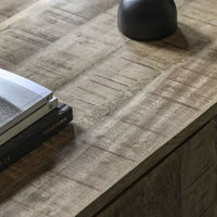 Add rustic charm to your home with this sturdy sideboard. With rough hewn Mango wood in a charming natural finish, this chunky sideboard features 4 doors with 2 cupboards and interior shelves, perfect for storage. Also available in a whitwash finish. Coordinating additional pieces available.