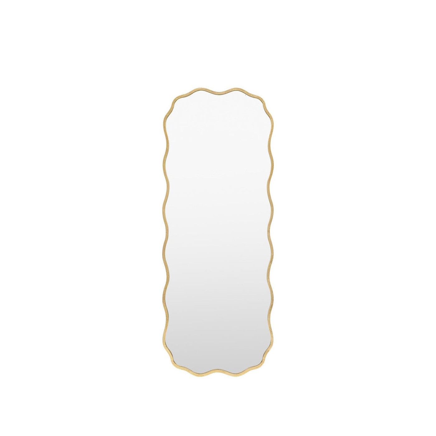 Add a dose of flair into your decor with our quirky round wavy edge leaner metal mirror in a rustic gold finish. Crafted from durable metal, this mirror combines a bold, unique design with high-quality craftsmanship.