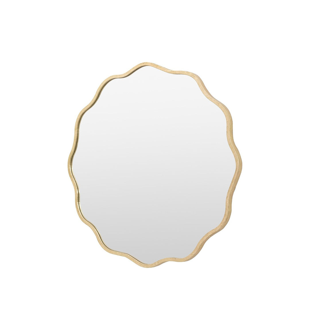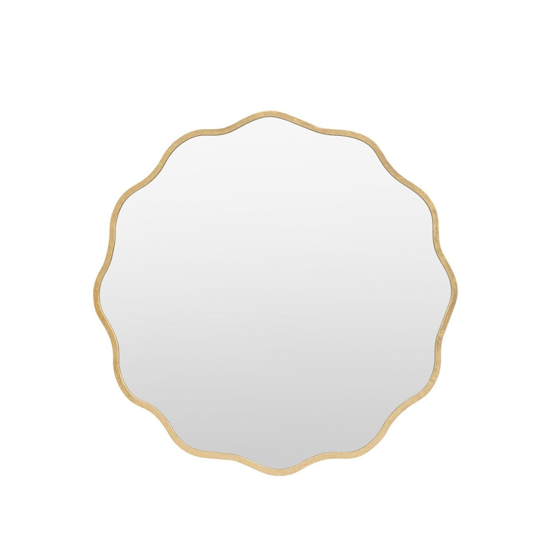 Add a dose of flair into your decor with our quirky round wavy edge round metal mirror in a rustic gold finish. Crafted from durable metal, this mirror combines a bold, unique design with high-quality craftsmanship.