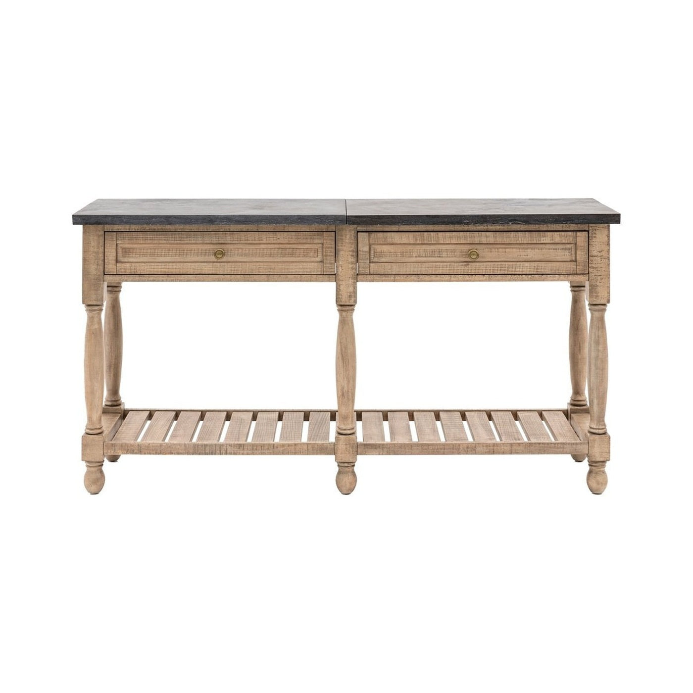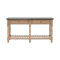 This lovely console offers practicality, combined with a stylish sophisticated yet rustic look, with its marble top, two drawers and large shelf. It is crafted from North American pine solids and veneers where practical, with the clever use of a mill saw giving characteristic features of cross sawn timber to create a tactile, dramatic finish. Matching pieces are available.