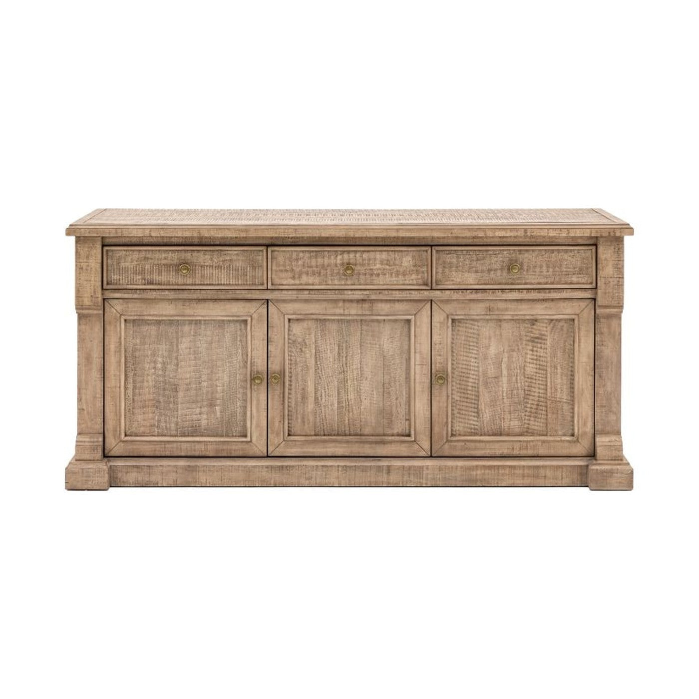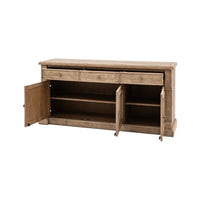 Featuring the clever use of a mill saw which gives characteristic features of cross sawn timber to create a tactile, dramatic finish, this beautiful sideboard offers a stylish sophisticated yet rustic look. It gives a lovely storage solution, with its three drawers and large cupboard space, and is crafted from North American pine solids and veneers where practical. Matching pieces are available.