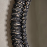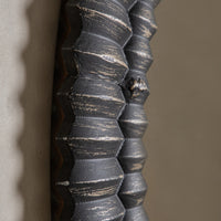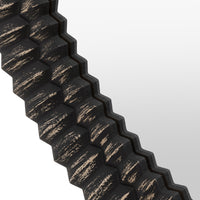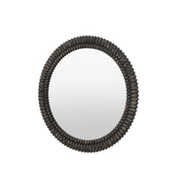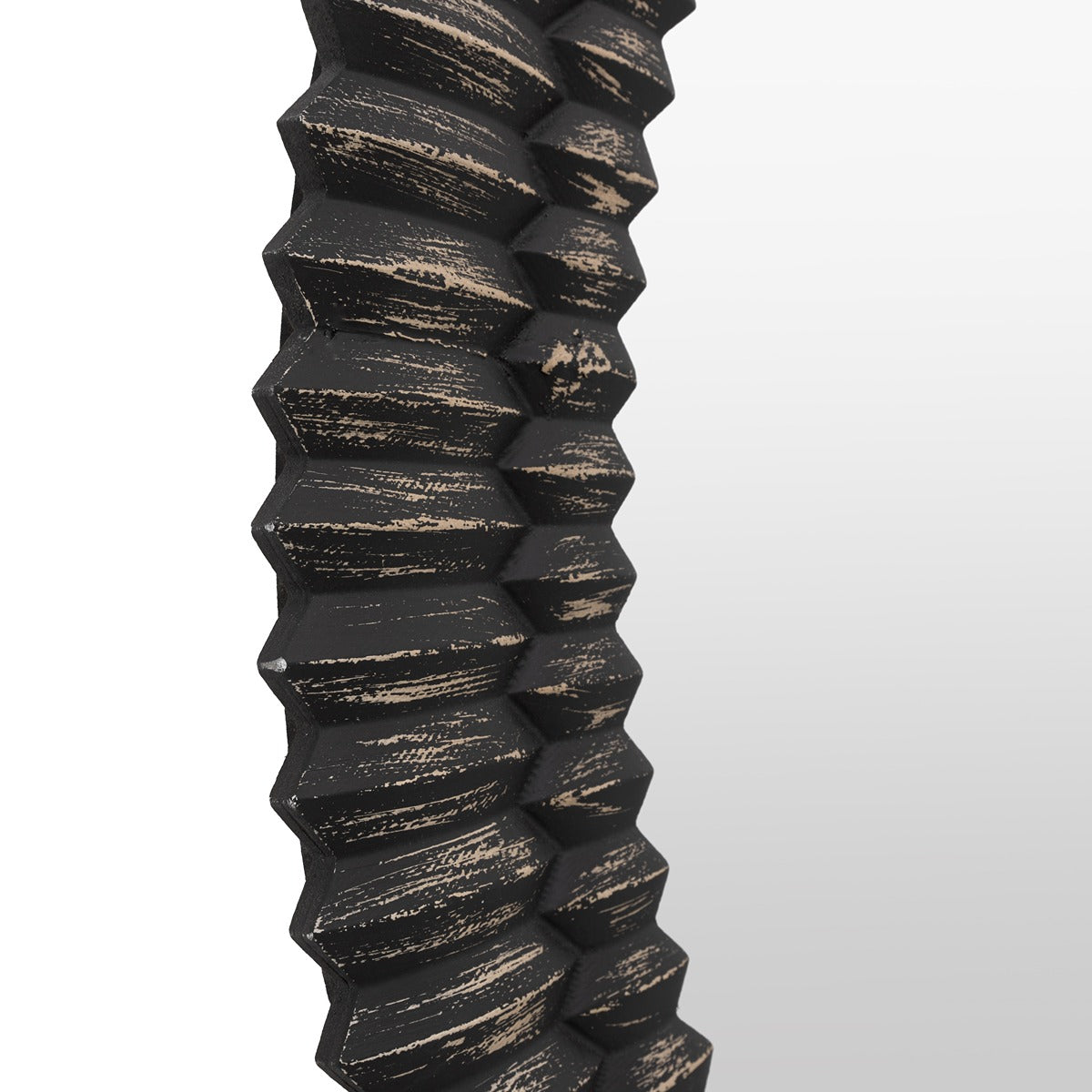 Mirror with 3D wooden etching style frame and a distressed dark wood finish. The intricate etching adds a rich, textured dimension, while the wash treatment brings a soft, coastal charm to the wood, highlighting its natural beauty. This combination of detailed craftsmanship and elegant finish makes the mirror a versatile statement piece for any room. Ideal for living rooms, bedrooms, or entryways, it not only reflects light but also infuses your home with timeless style and sophisticated grace.
