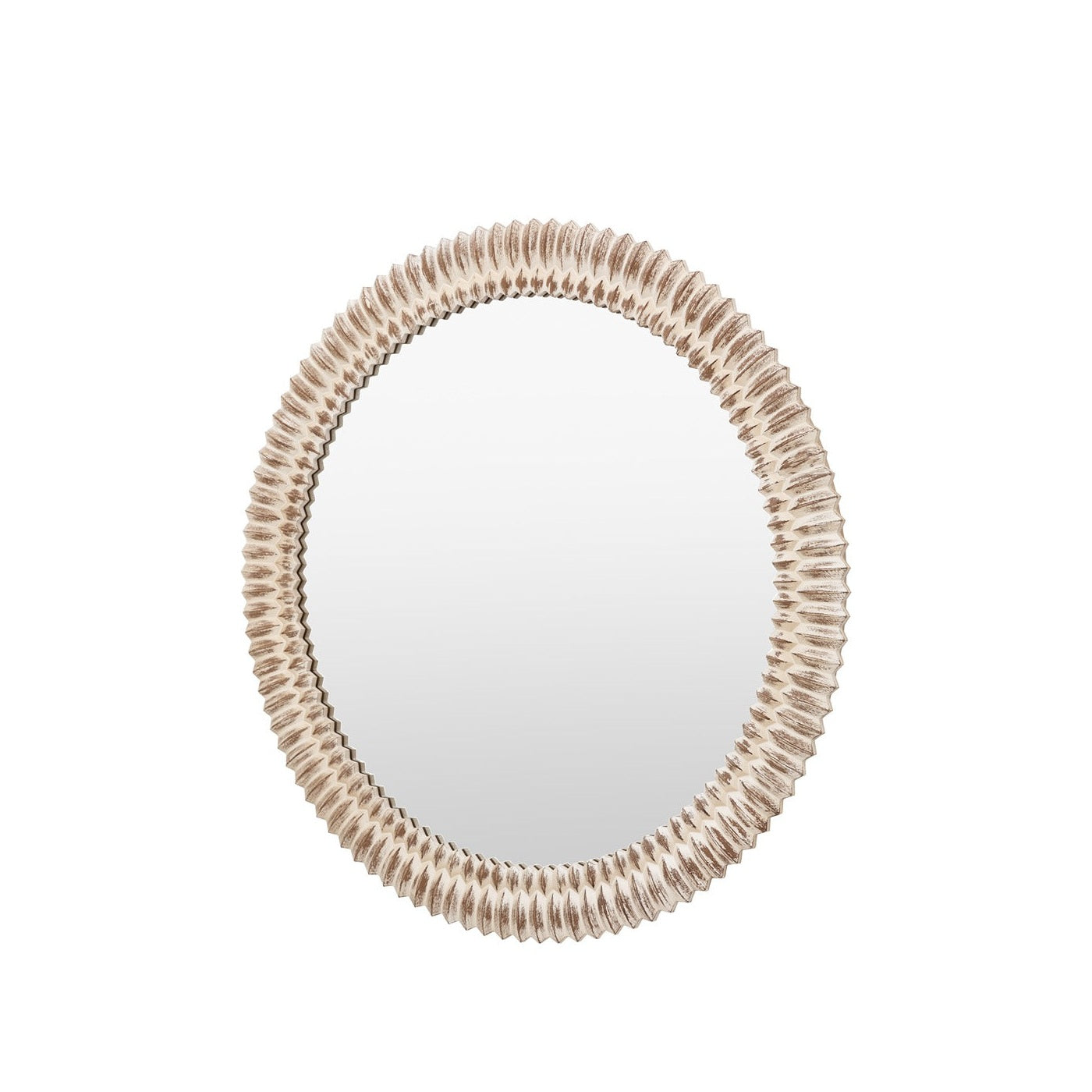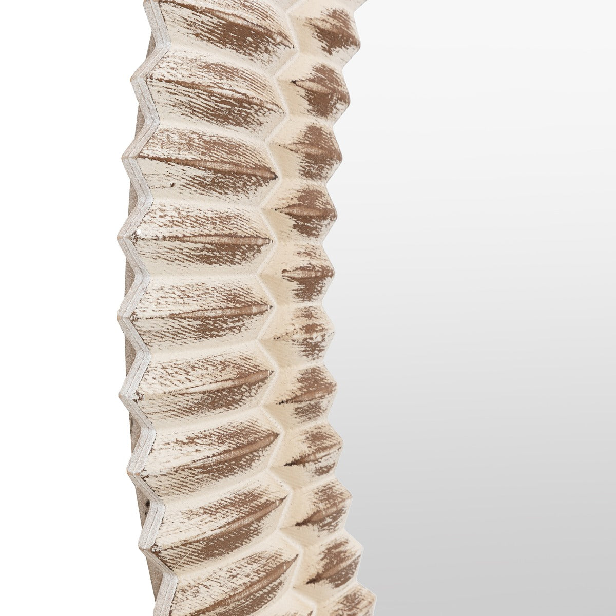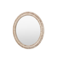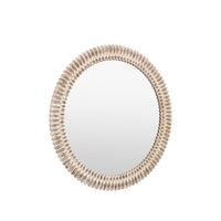 Enhance your space with our round mirror, distinguished by a captivating 3D wooden etching style frame and a chic whitewash finish. The intricate etching adds a rich, textured dimension, while the whitewash treatment brings a soft, coastal charm to the wood, highlighting its natural beauty. This combination of detailed craftsmanship and elegant finish makes the mirror a versatile statement piece for any room. Ideal for living rooms, bedrooms, or entryways, it not only reflects light but also infuses your home with timeless style and sophisticated grace.