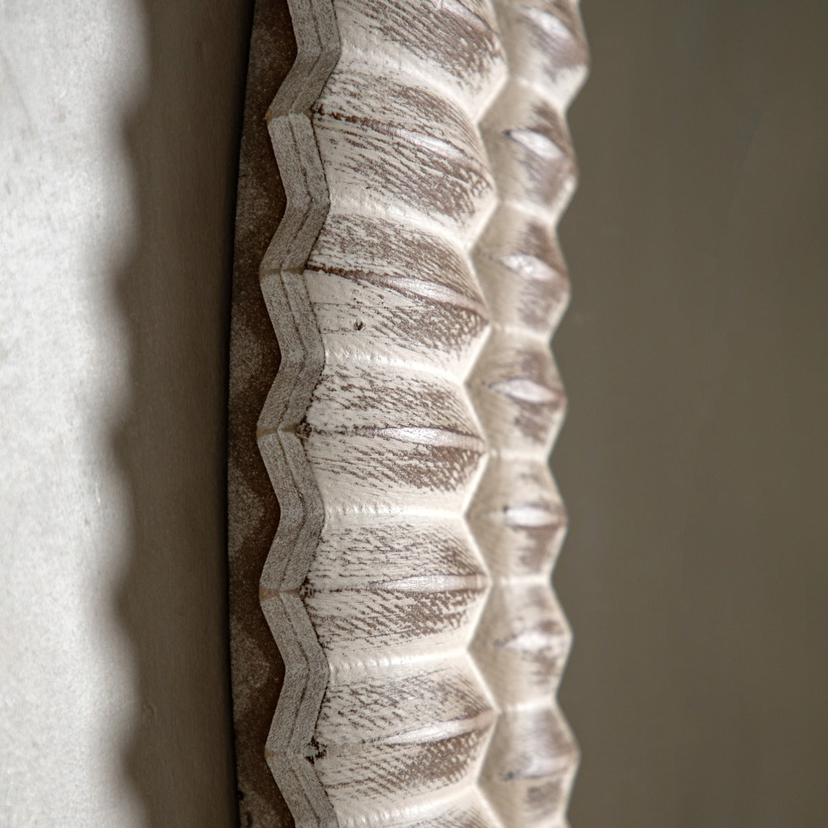Enhance your space with our round mirror, distinguished by a captivating 3D wooden etching style frame and a chic whitewash finish. The intricate etching adds a rich, textured dimension, while the whitewash treatment brings a soft, coastal charm to the wood, highlighting its natural beauty. This combination of detailed craftsmanship and elegant finish makes the mirror a versatile statement piece for any room. Ideal for living rooms, bedrooms, or entryways, it not only reflects light but also infuses your home with timeless style and sophisticated grace.