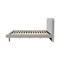 Upholstered in light grey boucle fabric with an intriguing bobble texture this modern bedstead will update any bedroom. The slim wooden legs and gently curved headboard add to the contemporary feel, making this bedstead the perfect addition to any modern home. Also available in other sizes and colours.