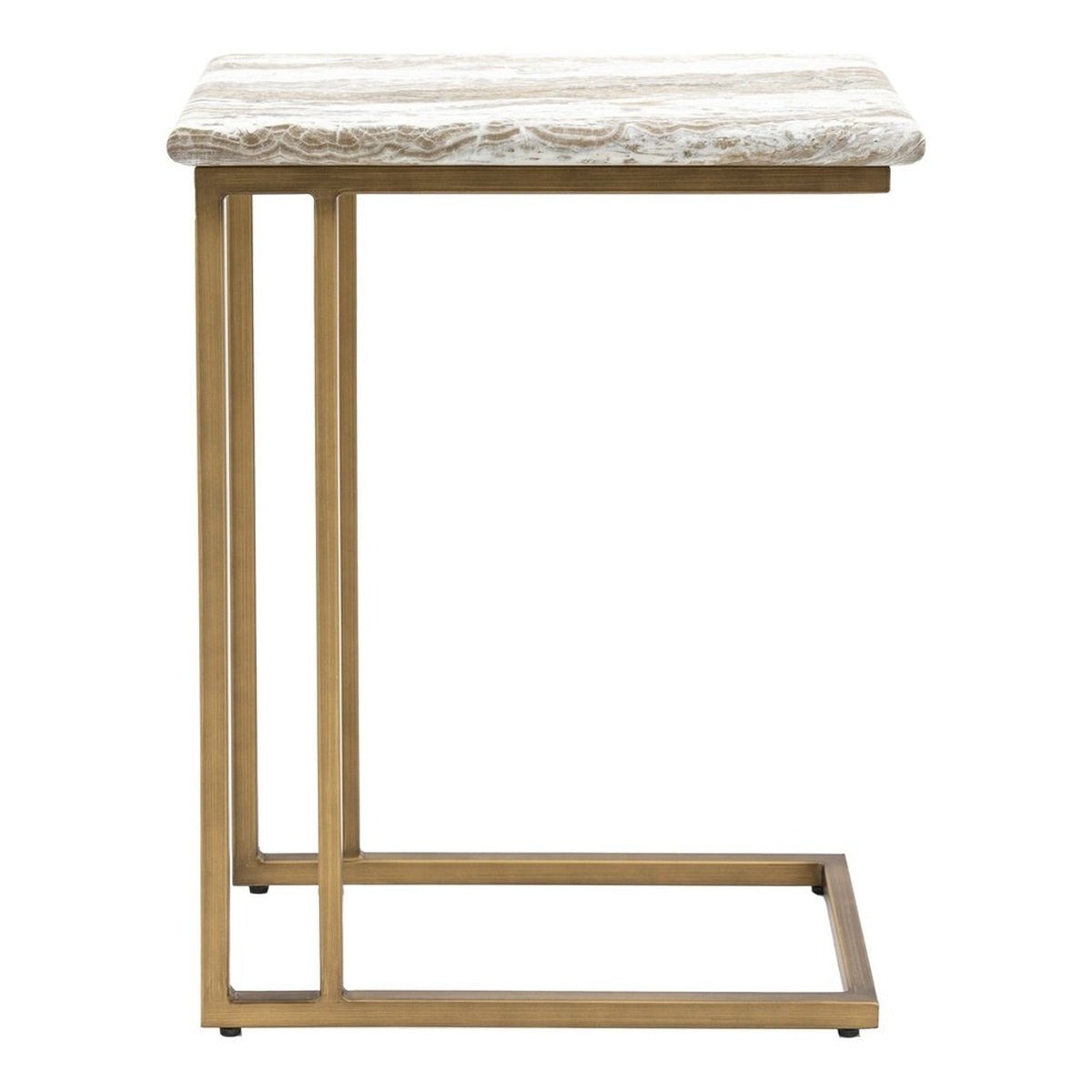 This lovely supper table will add a touch of sophisticated elegance to a room. The stunning top features the most amazing green-grey marble faux finish which is created with the latest state of the art technology to give the look and feel of the real thing but without the weight and technical difficulties. The faux marble is perfectly complemented by the metal base which has a classy bronzed brass finish, to give an understated luxury style, perfect for any classic modern interior. Matching items also available.