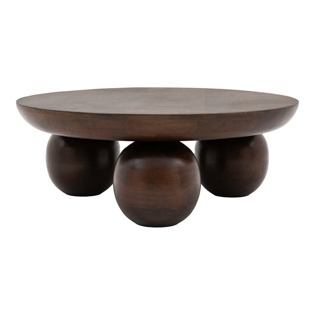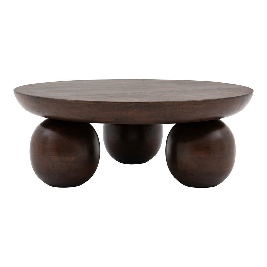 Offering a dramatic retro look, this stunning coffee table is crafted from mango wood solids which have a rich deep finish. The chunky top gently curves away on the underside, with turned ball feet completing the look. Coordinating items are available.
