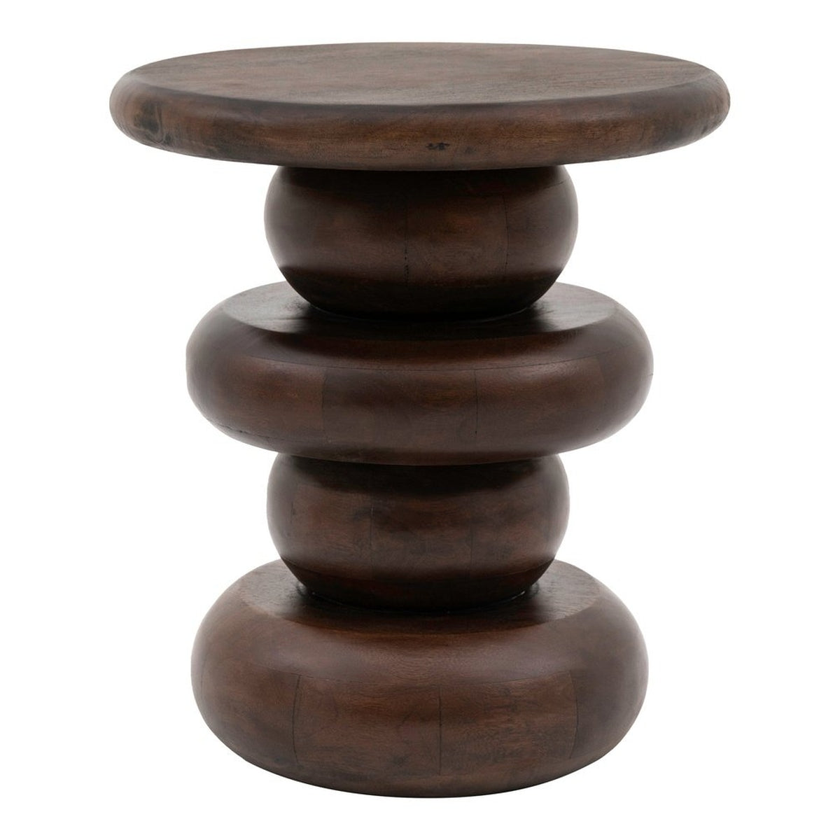 With its sculptural design, this stunning side table offers a dramatic retro look. It is crafted from mango wood solids with a rich deep finish. Coordinating items are available.
