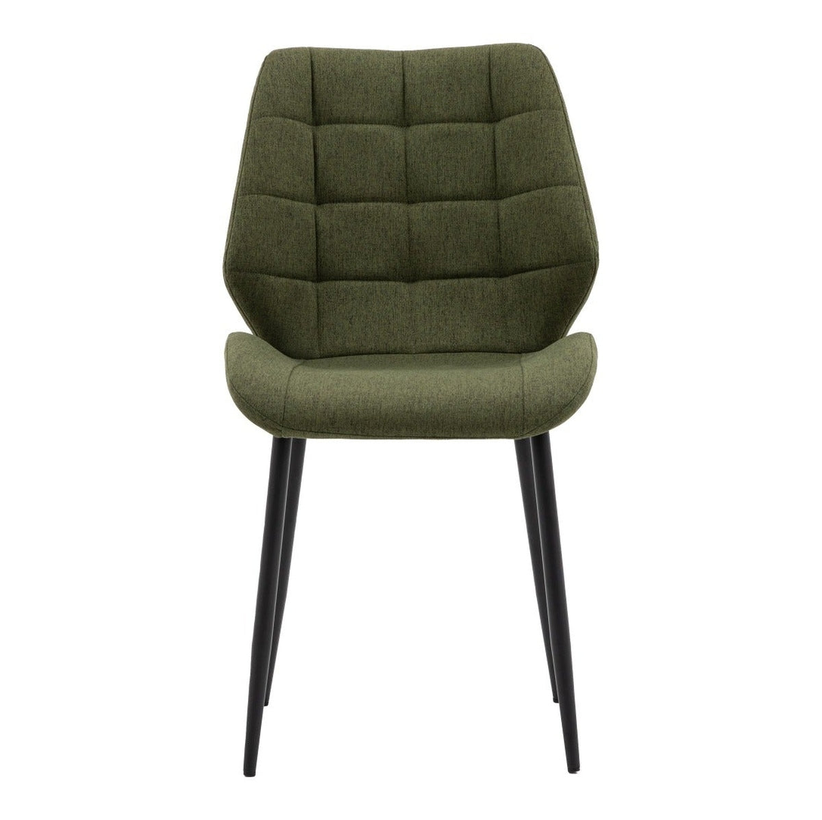 Set of 2 Mid-Century inspired modern dining chairs. These versatile chairs will make a stand out addition to your dining space or home office. The shaped chair back and curved seat are upholstered in bottle green with extra stitch detailing for a modern look.