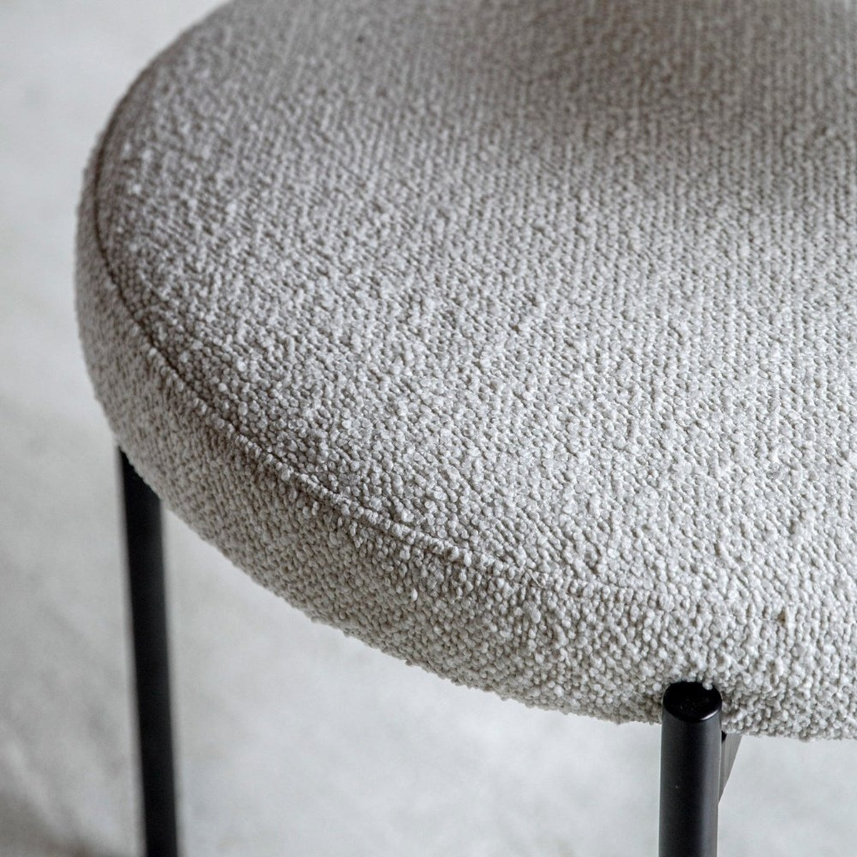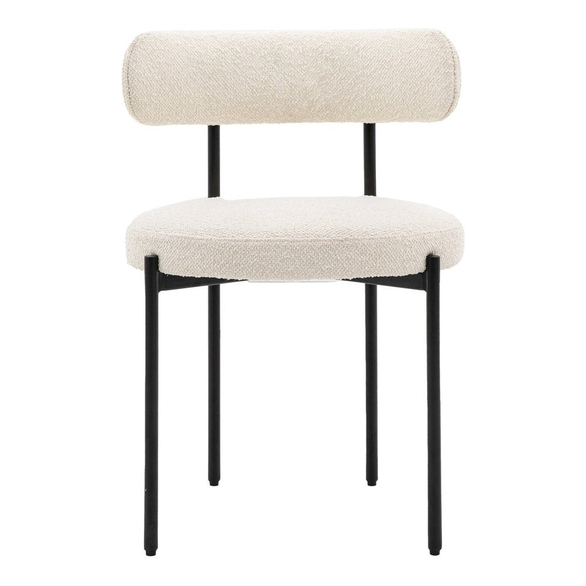 Add a stylish design touch to a room with this pack of two stunning dining chairs. The seats and back rails are upholstered in a lovely cream fabric, with the curved back echoing the shape of the round seat, and the black metal legs and frame perfectly complementing these. Also available in other colours.