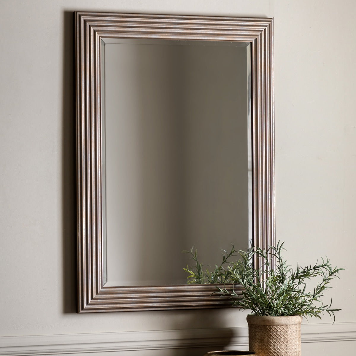 This mirror boasts a distinctive ridged design that catches the eye, while the distressed finish adds an authentic, timeworn charm. The rectangular frame, with its rich gold tones and textured details, provides a sophisticated yet rustic appeal, making it a striking focal point for any room. Ideal for living rooms, bedrooms, or hallways, this mirror blends timeless beauty with modern style, effortlessly enhancing your decor with a warm, inviting glow.