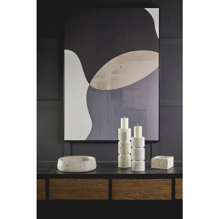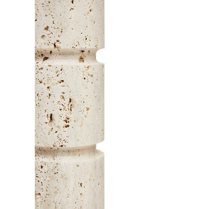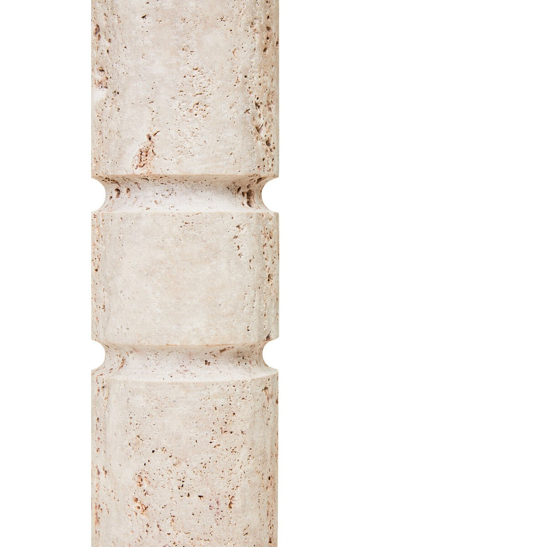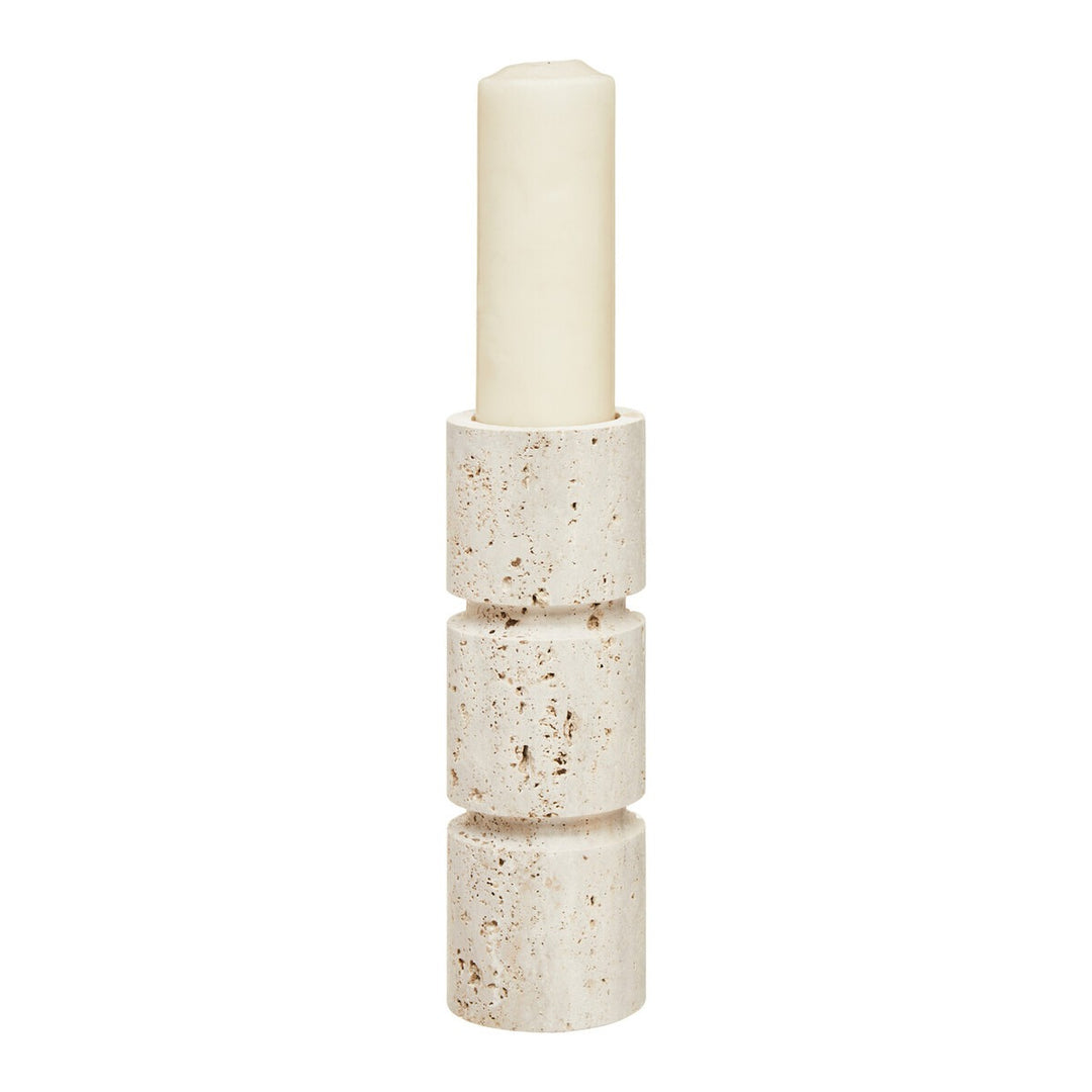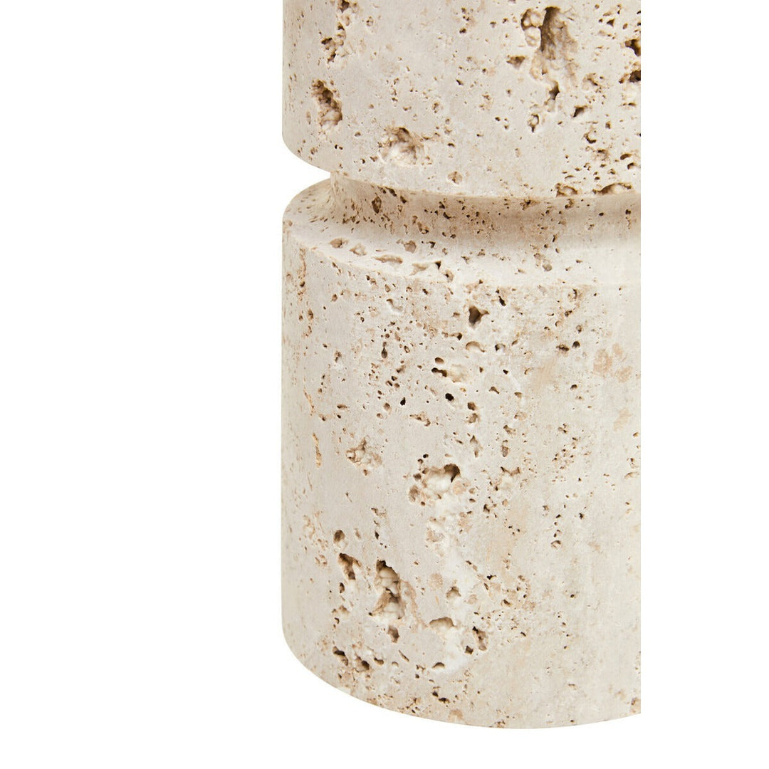 This large candle holder is crafted from travertine, a natural limestone known for its fibrous texture in earthy and neutral tones. Featuring a stacked design, it is built with precison and is ideal for decorating dining tables, mantelpieces, or any corner of home.