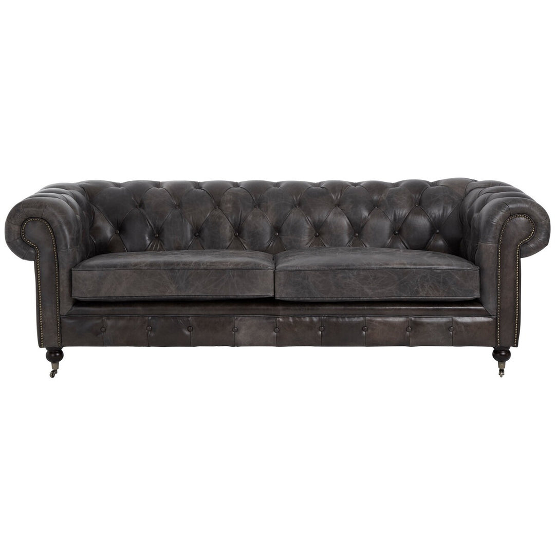 Victor Leather Chesterfield Sofa - Dark Grey Premier 1