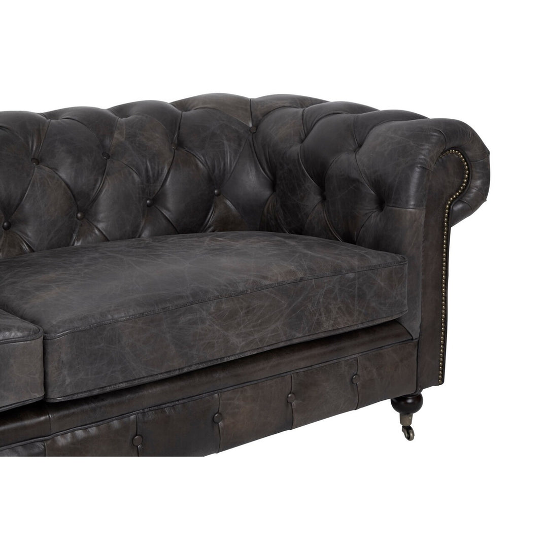 Victor Leather Chesterfield Sofa - Dark Grey Premier 11