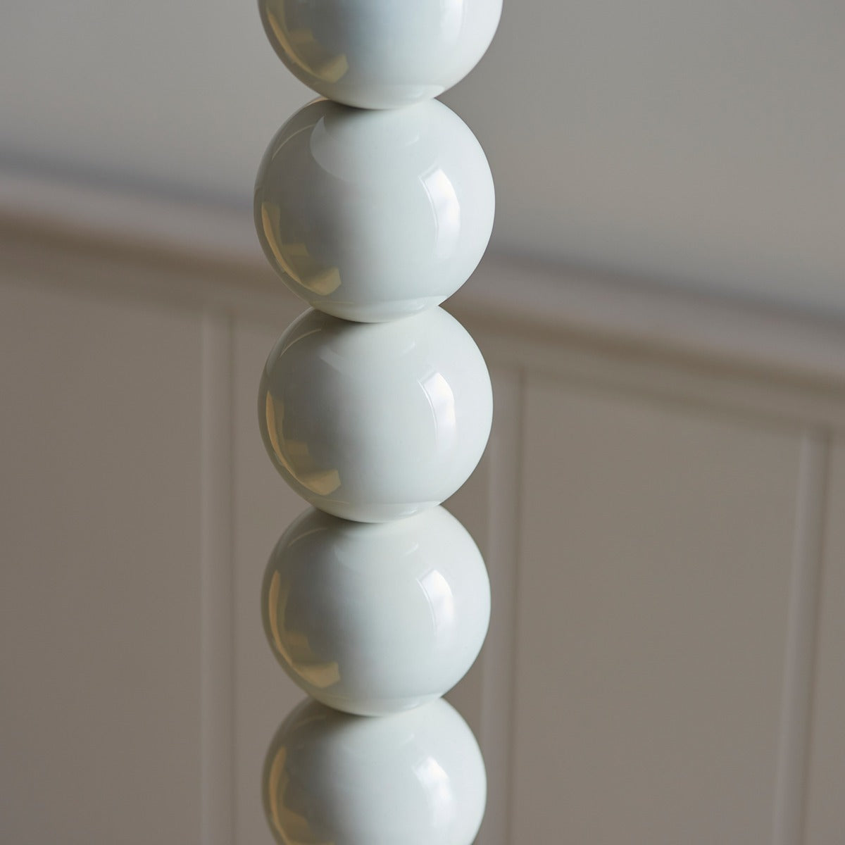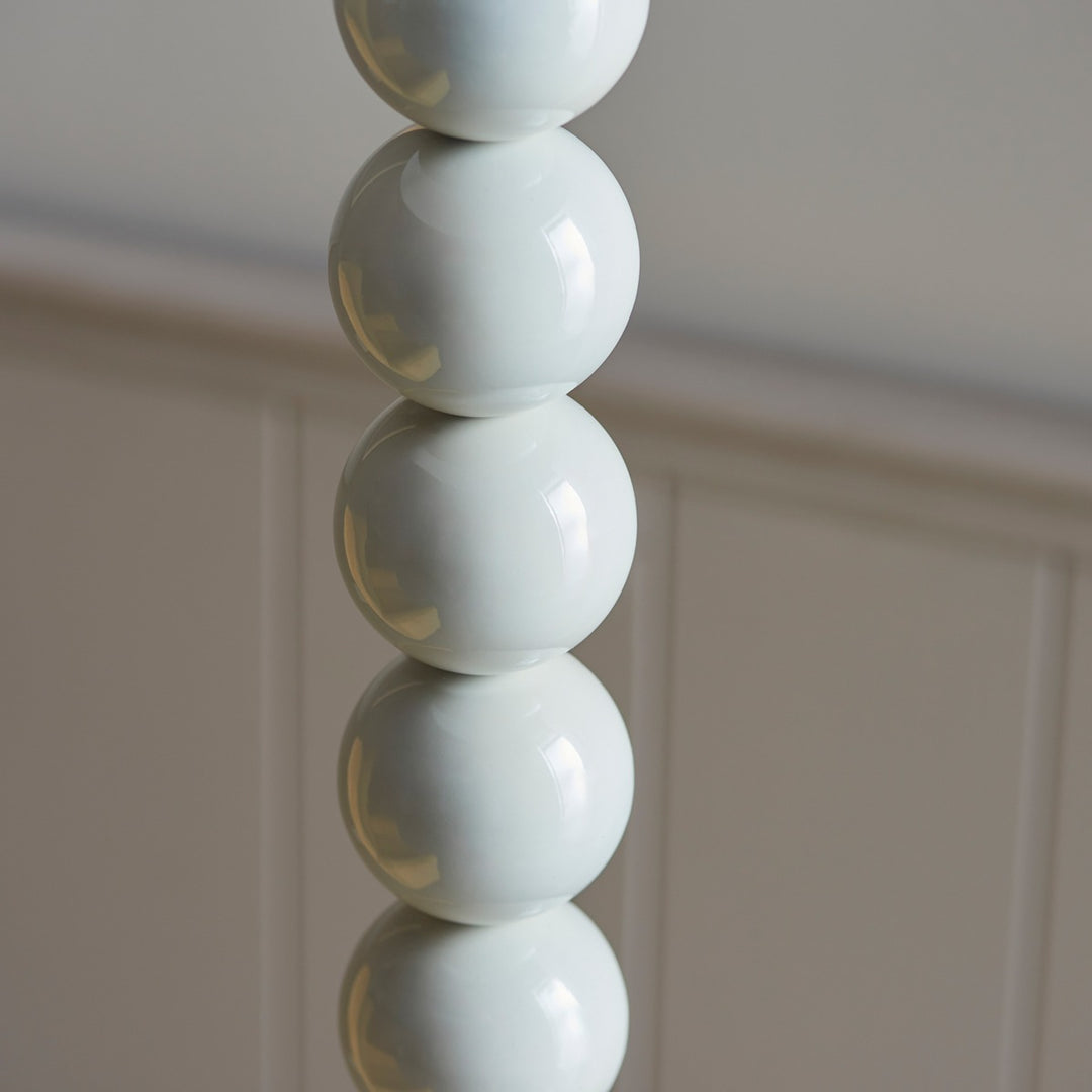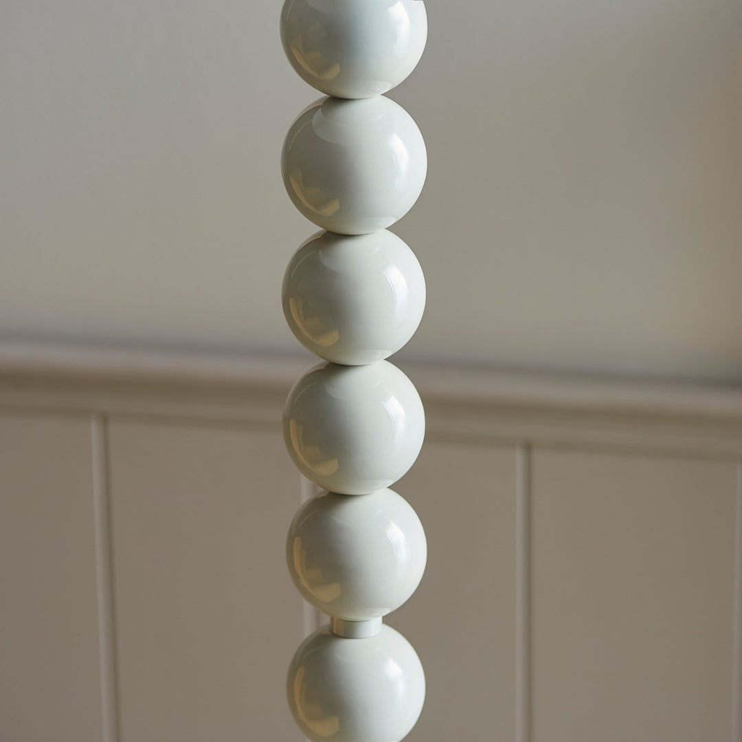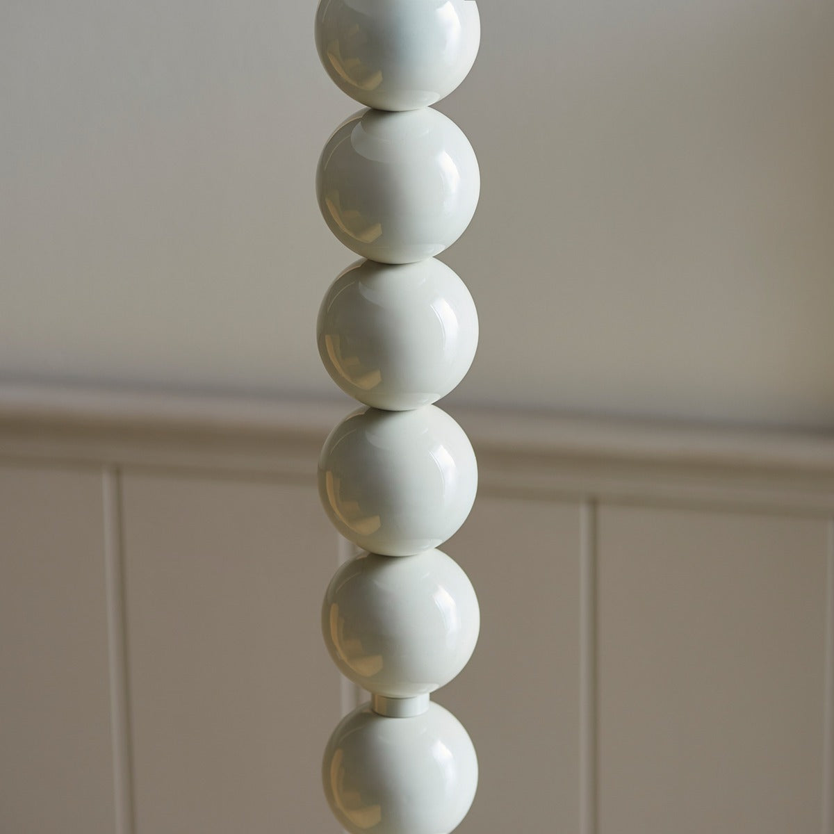 Add some colour into your home with this playful floor light base. Multiple stacked metal spheres finished in gloss almond white paint with E27 lamp holder, in-line foot switch and colour matched fabric flex. Choose from one of our 35cm or 40cm decorative fabric shades to complete this perfect colour addition to your home.