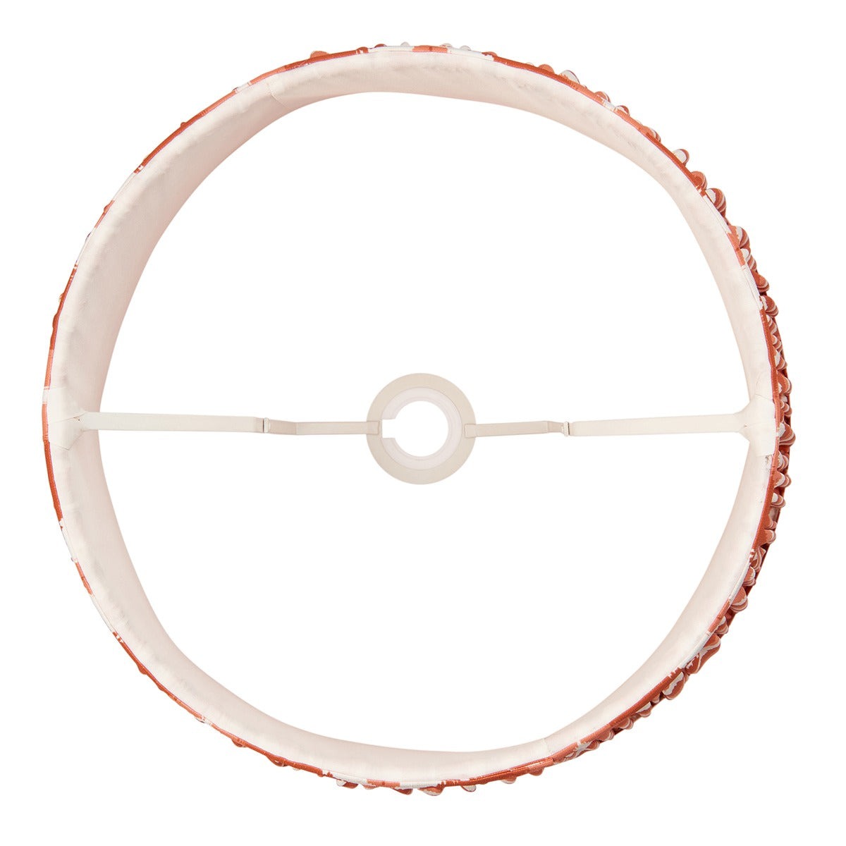 35cm tapered shade with reversible white gimbal. Zigzag pattern in an apricot orange colour with taped edge detailing and plain inner lining. Perfect when paired with one of our beautifully decorative table lights, floor lights and cable sets.