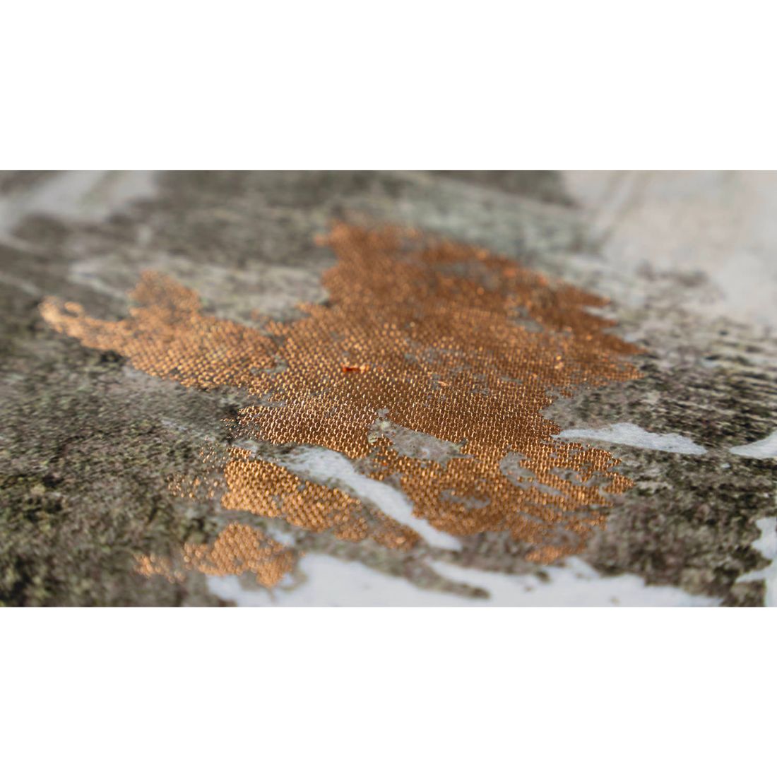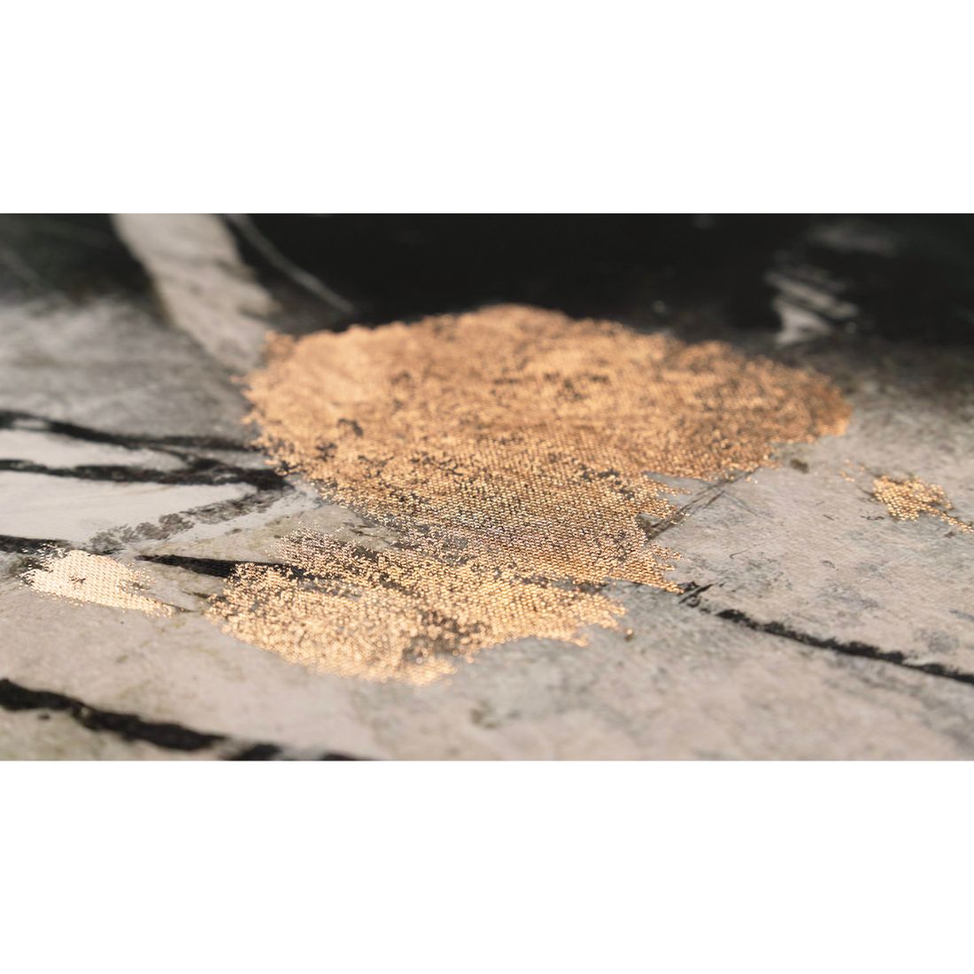Organized Chaos blends soothing neutral tones with striking bronze metal leaf that catches the light and adds warm, sophisticated shimmer. This made-to-order framed abstract canvas creates a harmonious rhythm of texture and tone, bringing refined balance and artistic depth to any curated interior.