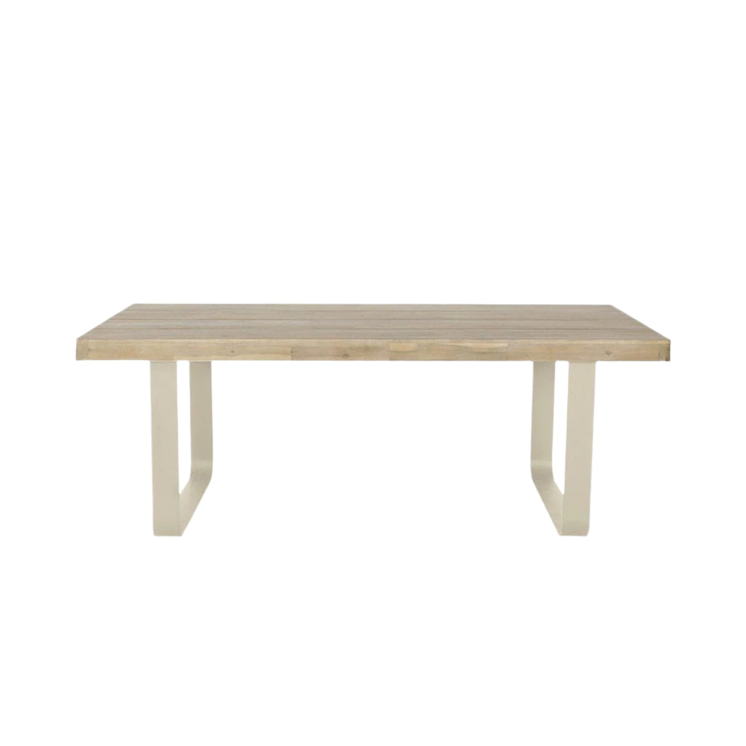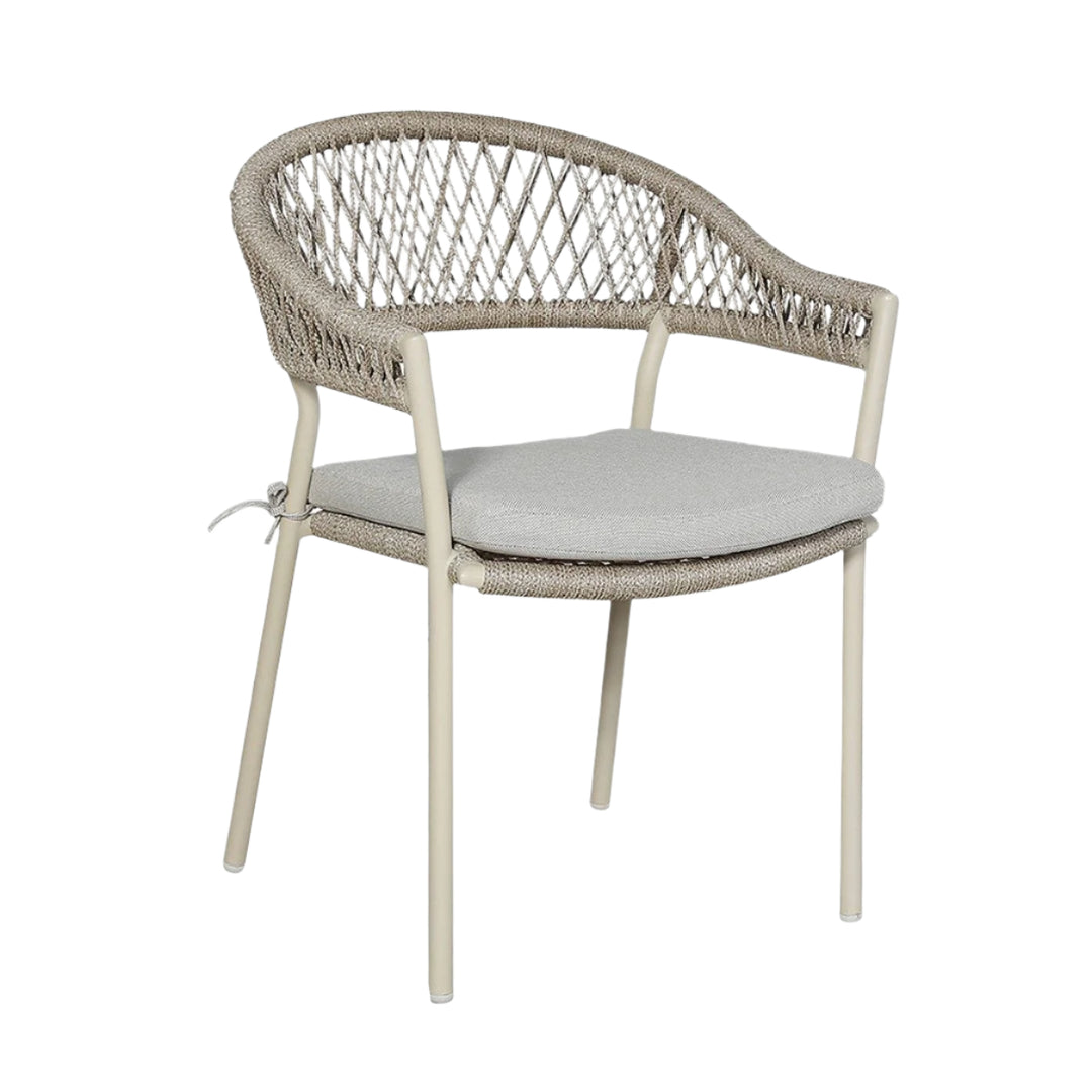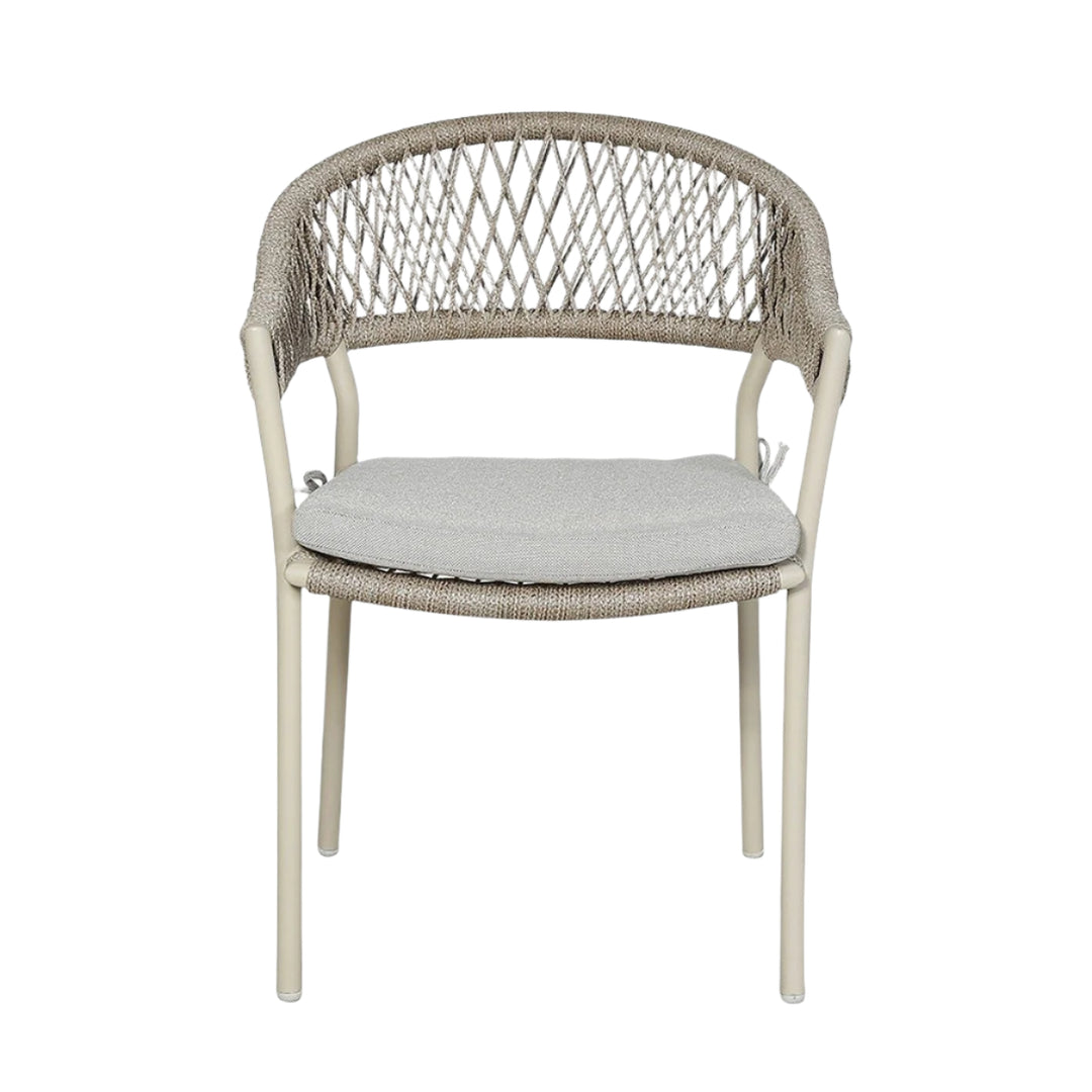 Introducing the Osuna 6 Seater Outdoor Dining Set, made in Vietnam, featuring a contemporary design and a melange of high-quality materials. Environmentally friendly light teak effect acacia wood is used to form the top of the rectangular dining table. The natural materials are complimented by a latte coloured powder coated aluminium frame and natural wheat colour rope weave. This dining set is low maintenance, durable, and resistant to stains and fading meaning it will elevate your outdoor space for years to come.