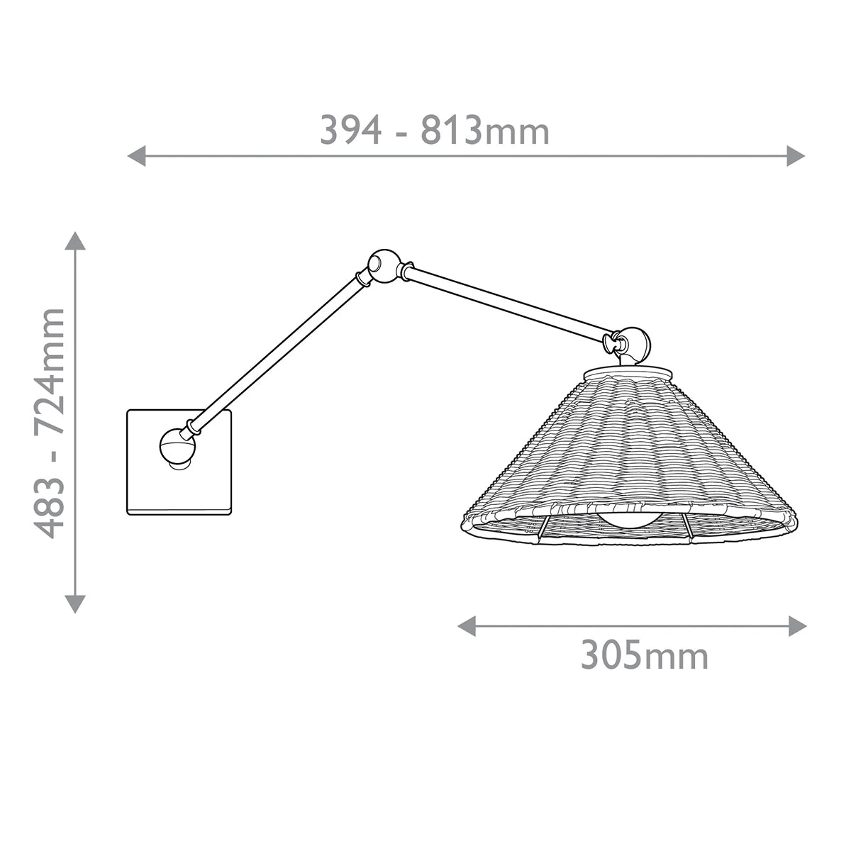 Our versatile, articulating wall light dons a woven wicker shade for a fun, textural mix. Finished in antique brass, it's useful as a reading lamp, picture light or as accent lighting over bookcases.