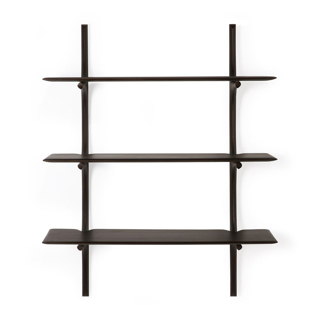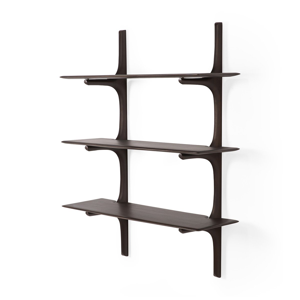 Pi Wall Shelf 3 Shelves - Dark Brown Varnished Mahogany