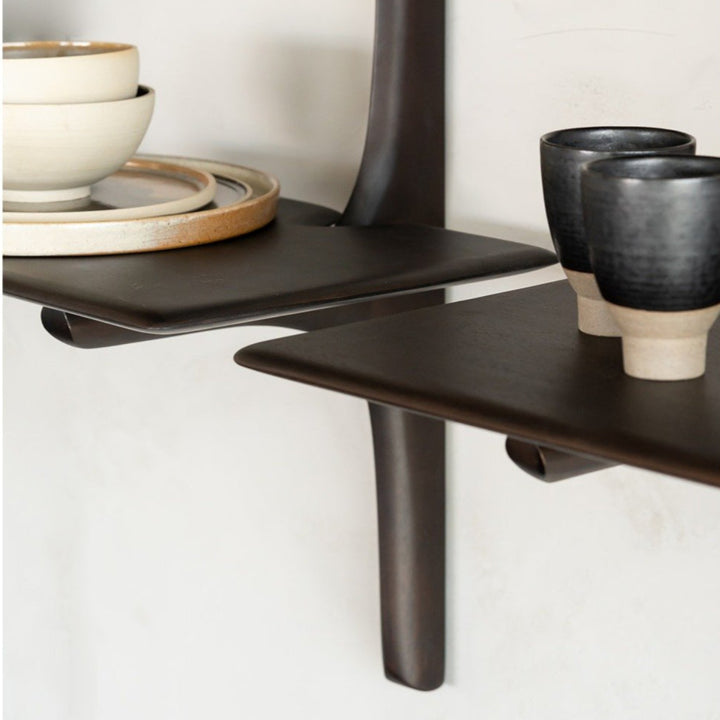 Pi Wall Shelf 3 Shelves - Dark Brown Varnished Mahogany Ethnicraft 8