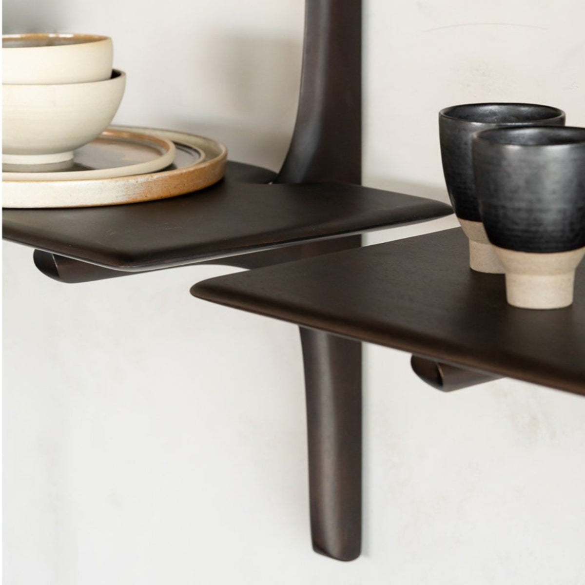Pi Wall Shelf 3 Shelves - Dark Brown Varnished Mahogany Ethnicraft 10