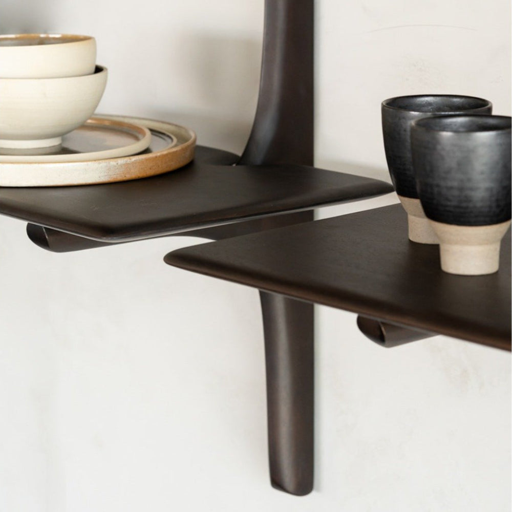 The PI collection honours nature’s design by keeping the strength, curves and lines, as nature intended. Interesting shapes are discovered in this sleek and stylish, polished imperfect, finish. Each PI item is finished by hand to ensure that the individual character of the wood is respected. The PI wall shelf provides a balanced space to store cherished mementos.