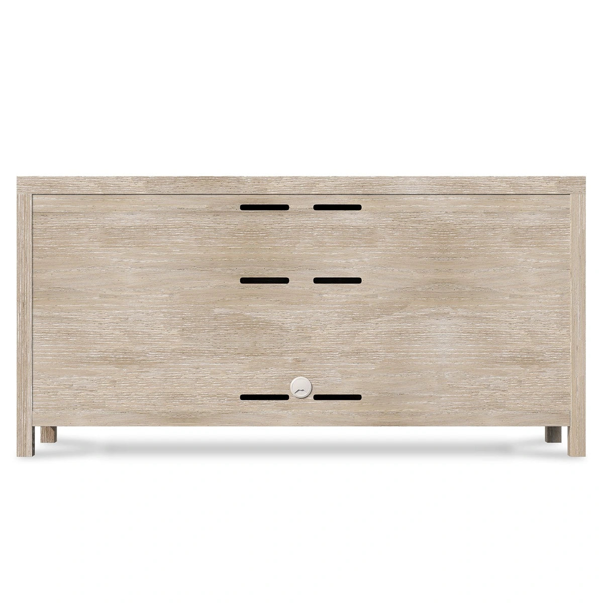 The Prado dresser finds its inspiration in the coffered ceilings of the Prado museum. Six pull-to-open drawers showcase a dimensional geometric design in cast resin overlays. Subtle grain patterns are highlighted with a Tawny finish.