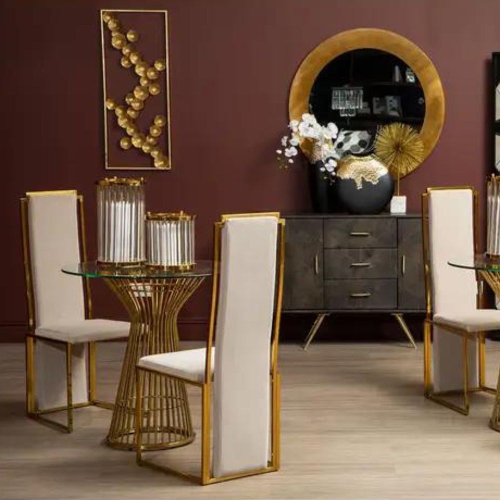 Vogue Round Dining Table - Gold / Gold