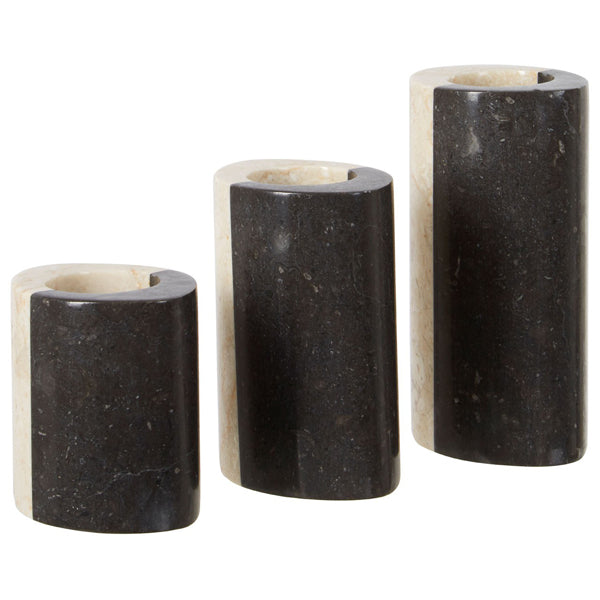 Suki Marble Set of 3 Candle Holders - Cream & Black