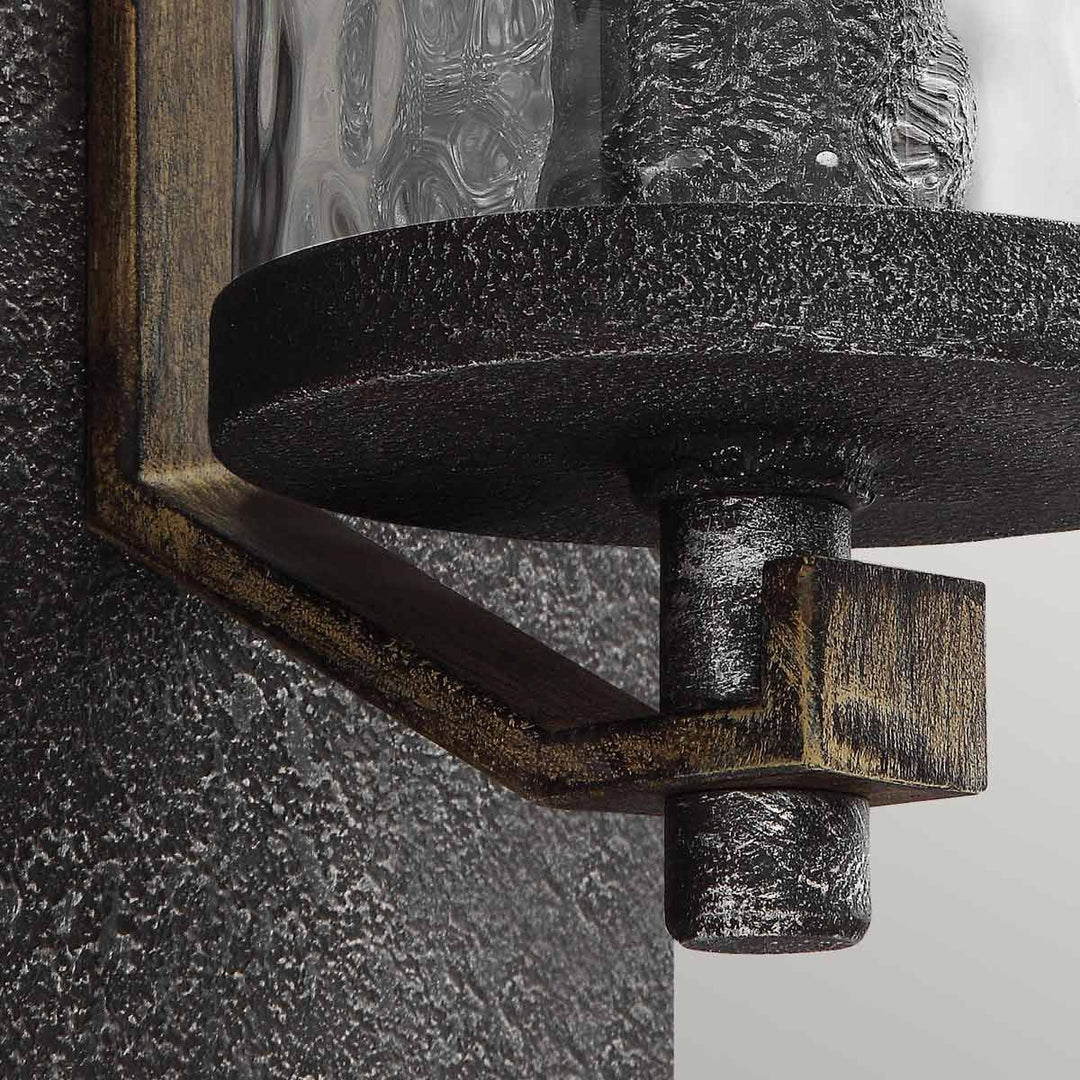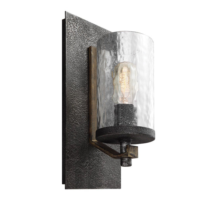 The Quintiesse Angelo 1 Light Wall Light brings together rustic and industrial designs to create a beautiful, rugged aesthetic. This fixture features a thick wavy glass shade that complements the two-toned finish of Distressed Weathered Oak and richly textured Slated Grey Metal. Crafted from high-quality steel and clear wavy glass, the Angelo wall light is perfect for adding a touch of character and sophistication to any living room. Its compact design and distinctive look make it an ideal choice for spaces that require a subtle yet impactful lighting solution. The Angelo collection celebrates the beauty of rugged imperfection, offering a unique blend of rustic charm and industrial elegance that enhances the ambiance of any room.