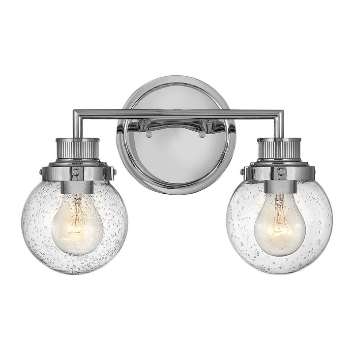 Transform your bathroom with the Quintiesse Poppy 2 Light Wall Light in Polished Chrome. Featuring clear seeded glass spheres and a refined, ribbed Chrome framework, this fixture exudes mid-century style with a modern twist. The elegant design is enhanced by a stepped backplate and crisp crossbar, adding sophistication to any space. With an IP44 rating, the Poppy 2 Light Wall Light is ideal for bathroom use, offering both style and functionality. This airy design showcases clear seeded glass that bubbles out of the ribbed Chrome or Heritage Brass framework, creating a simple yet sophisticated silhouette. Whether you are renovating your bathroom or updating its decor, this fixture is sure to impress. Its durable construction ensures long-lasting beauty, while the clear seeded glass adds a touch of texture and visual interest. Experience the blend of elegance and practicality with the Poppy 2 Light Wall Light from Quintiesse. Trust in Quintiesse for lighting solutions that combine quality, style, and value.