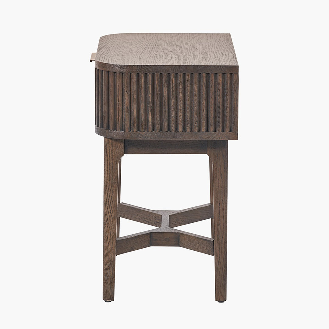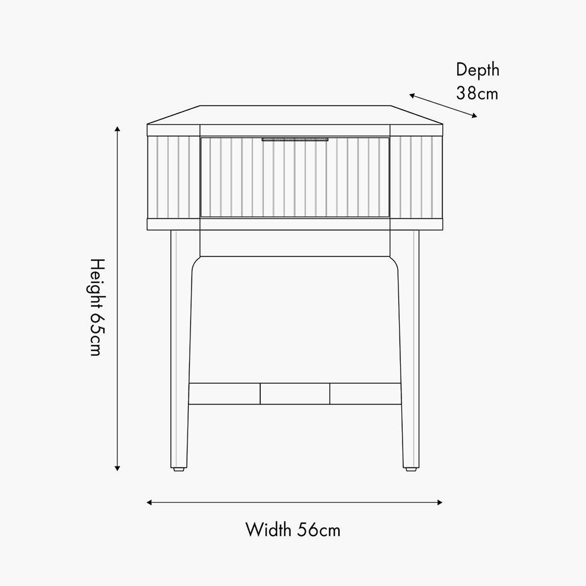 Introducing flair into your home with the Raye, 1 drawer unit, lovingly crafted in Vietnam. The ribbed design, in a sleek dark brown finish and a slim gold metal handle, offers a contemporary look, and this wood 1 drawer unit provides handy storage.
