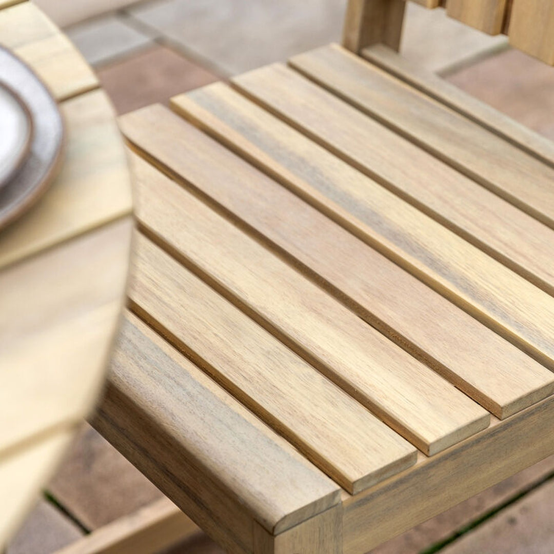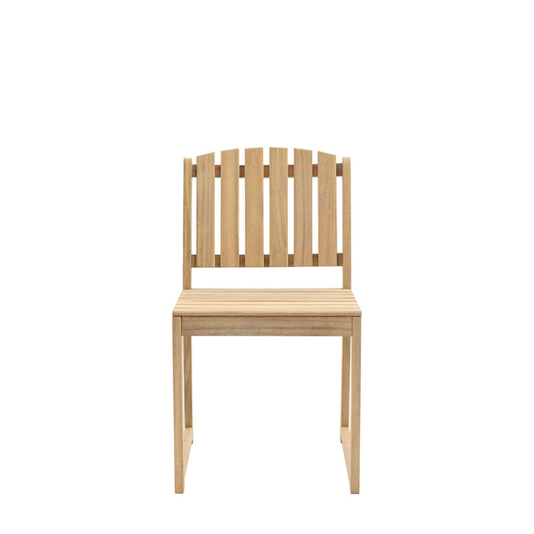 This classic outdoor dining chair features a simple yet elegant design. Crafted from durable acacia, it offers a warm and inviting look. The chair's slatted back and seat provide comfortable support, while the clean lines add a touch of sophistication. Perfect for creating a relaxed and stylish dining setting in your outdoor space.