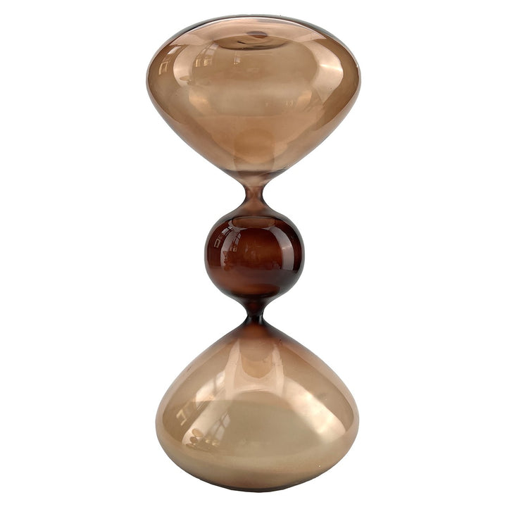 Richmond Interiors Elba Brown Hourglass Elba - Large is a statement piece that combines timeless function with modern design. The large glass structure, filled with sand, creates a captivating display of time passing, while the brown hue and elegant design make it a perfect fit for living rooms or offices. This hourglass brings both charm and functionality, offering a decorative element that can enhance any space with its unique presence.