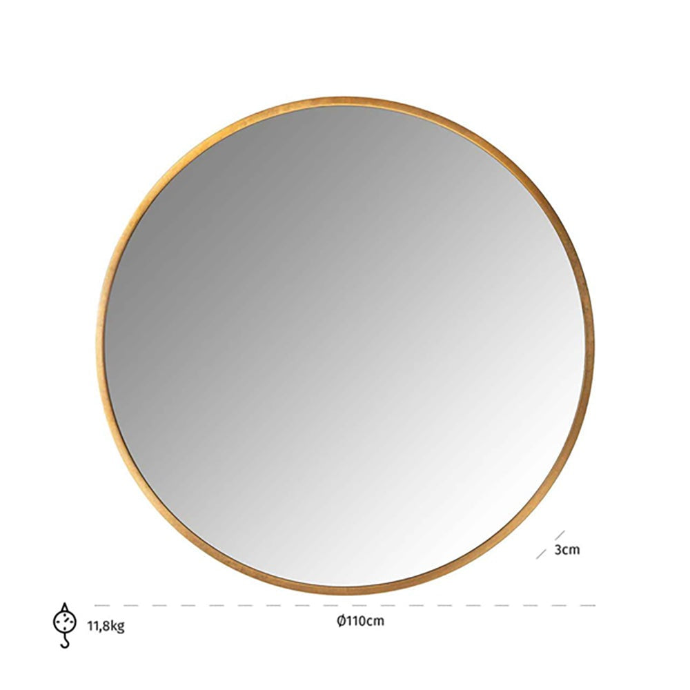 This golden, round mirror is both a practical and stylish statement piece to add to your home. This classic and timeless mirror will work perfectly in any space in your home, from your bathroom to your bedroom, hallway, or office.
