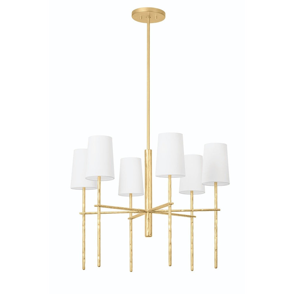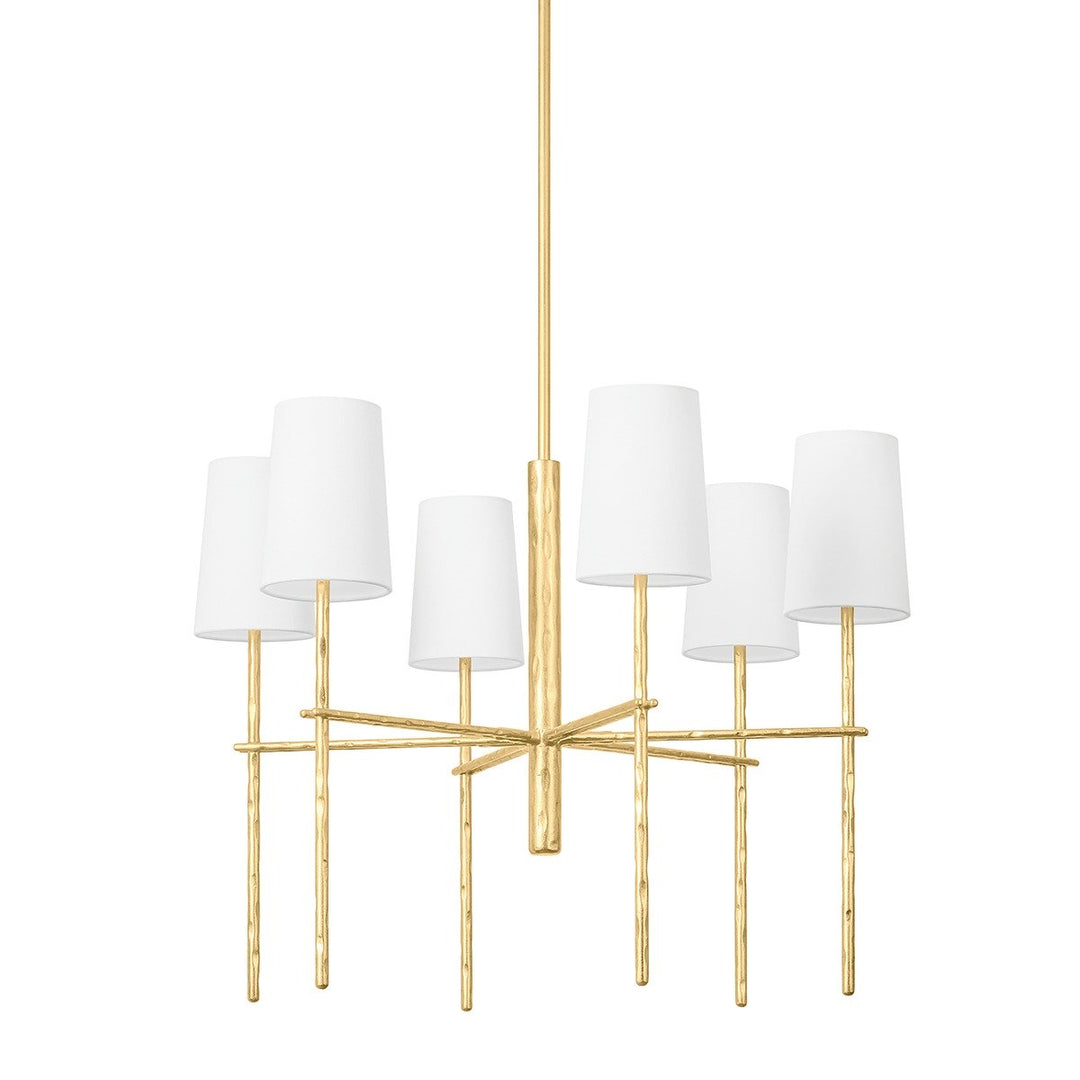 River 6 Light Chandelier - Vintage Gold Leaf: The River 6 Light Chandelier in Vintage Gold Leaf features a striking, elegant design that radiates warmth and luxury, ideal for larger spaces like dining rooms or foyers.