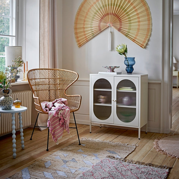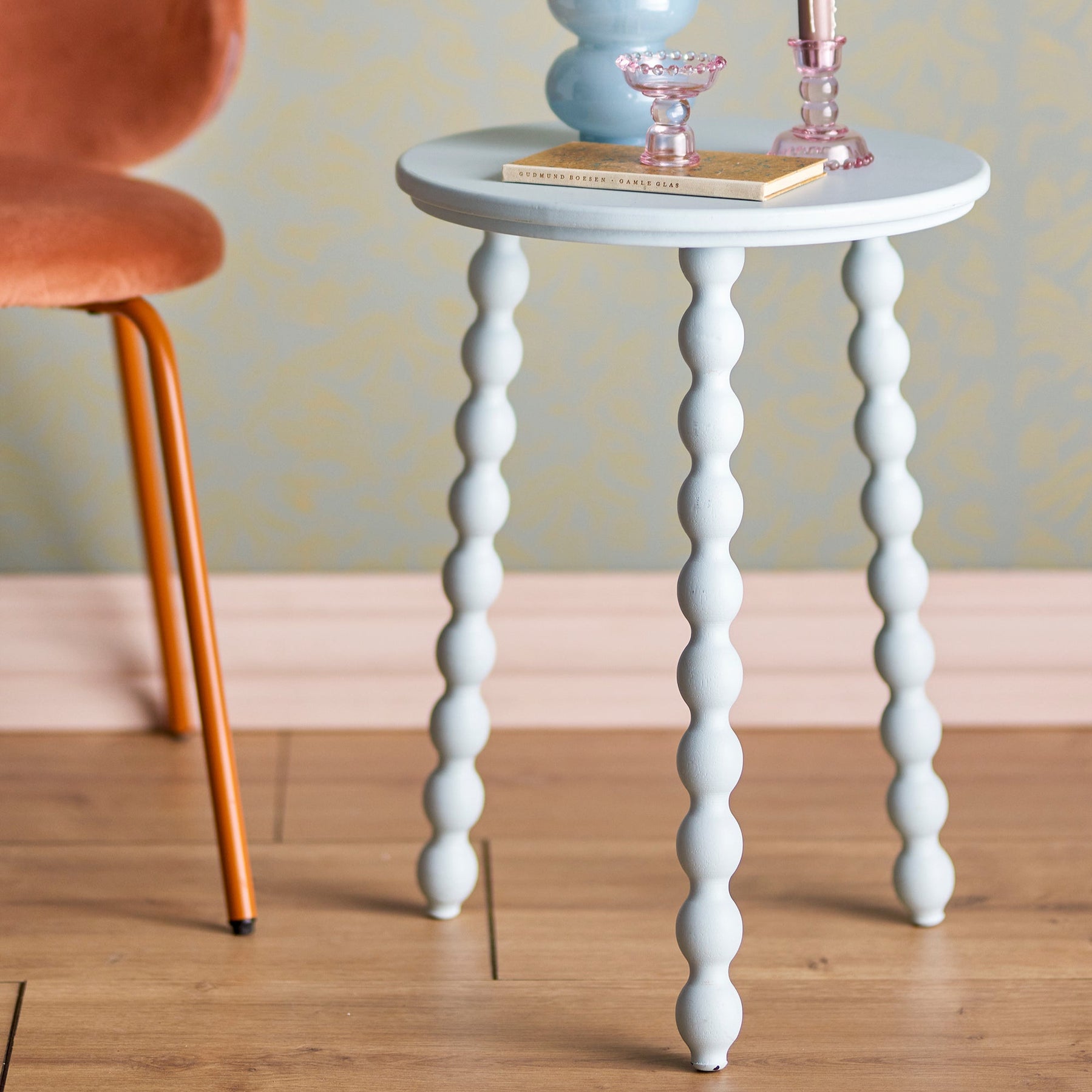The Salino Side Table by Bloomingville is a charming and delicate table made of rubberwood. With its smooth surface and light blue pastel shade, the table has a light and elegant look. It is ideal as a bedside table in the bedroom, a side table in the living room, or a practical spot for small items in a child’s room.