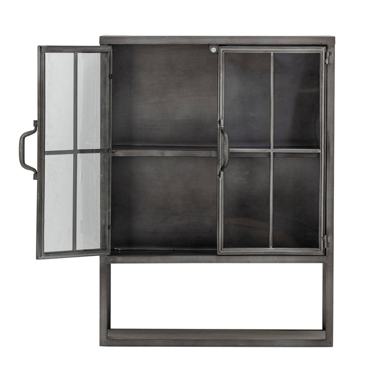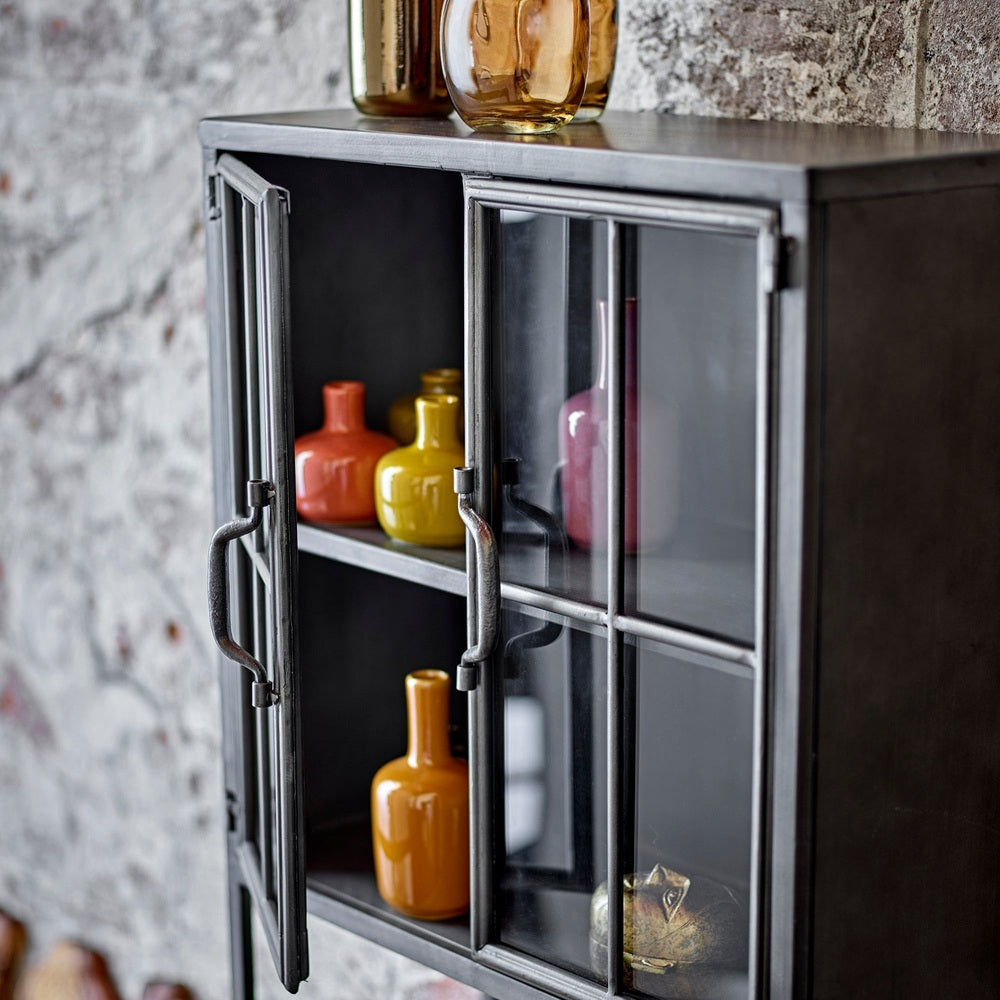 The Sindre Cabinet by Bloomingville is made of metal with glass windows and visible welds, giving it a raw and industrial look. The cabinet can be hung on the wall or placed on the floor, allowing it to fit perfectly into your home. It is ideal for storing or displaying beautiful decorations, figurines, and other items.