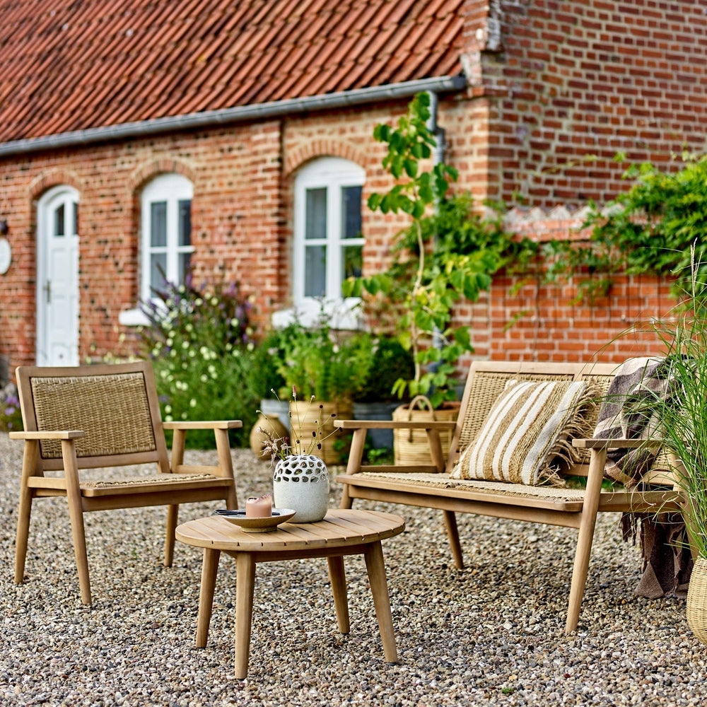 The Sorrento Lounge Chair from Bloomingville is an elegant chair with a frame made of FSC-certified acacia wood in a washed lacquer finish. The seat and back are made of polyrattan, offering a stylish look that can easily be mixed and matched with other outdoor furniture. Perfect for creating a relaxed and tranquil atmosphere in your garden or on the terrace. We recommend placing outdoor furniture in covered areas.