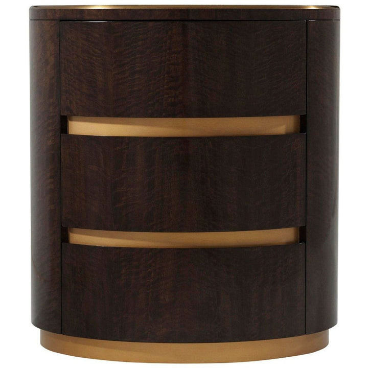 From the TA Studio by Theodore Alexander collection this natural beauty is abundant with these stunning bedside tables with their striking eucalyptus finish. The 62.9cm tall nightstands combine a fumed finish with gilt detailing to contrast beautifully with soft bedroom fabrics and sumptuous surroundings.