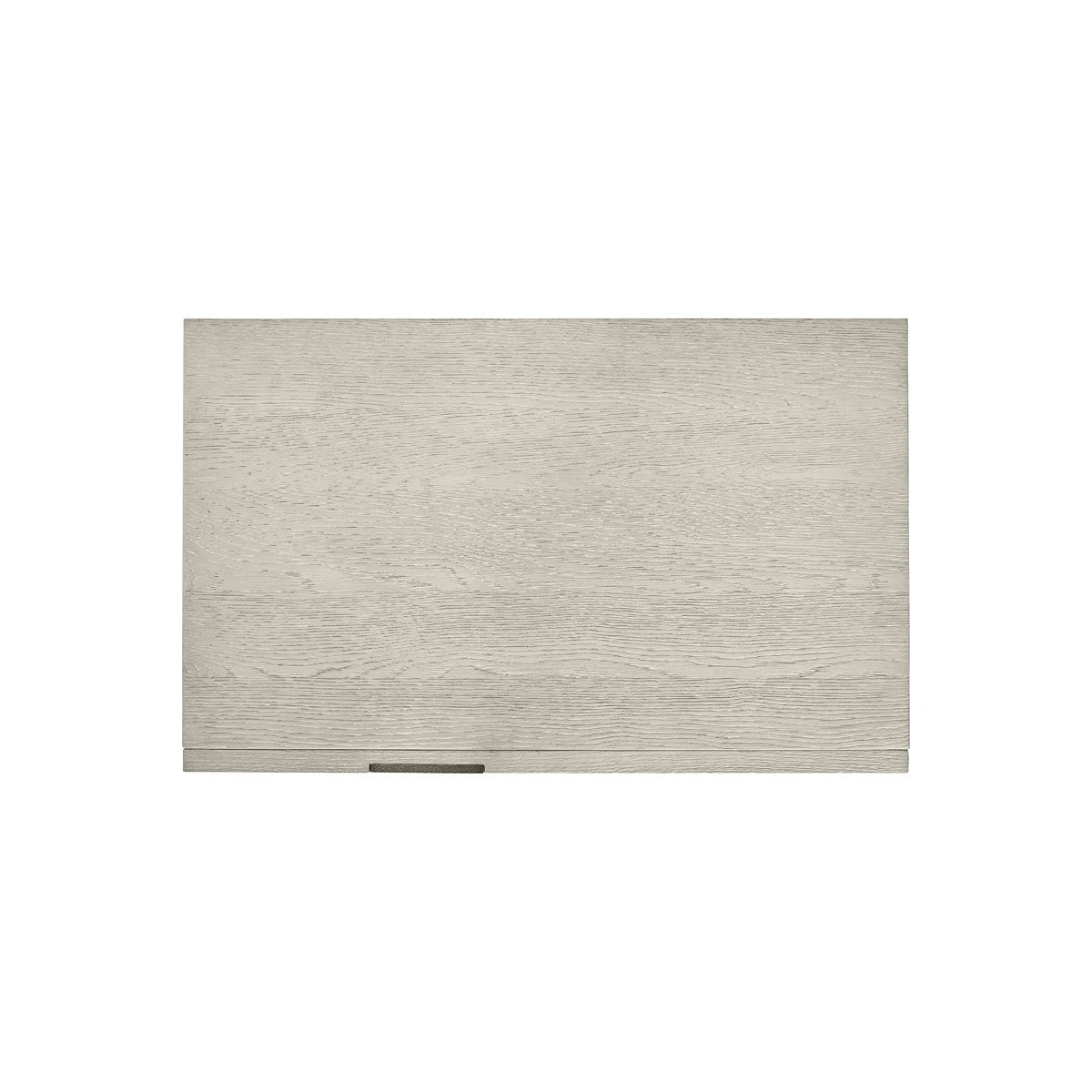 Additional Information: Wirebrushed oak drawer box in Larza finish and open sandblasted aluminum base in Satin Nickel finish Front accent aluminum post on front-facing left side One pull-to-open, soft-close drawer with finger pull Two-port A+C USB Charging unit Adjustable glides Anti-tip kit Not suitable for use with TV Specifications subject to change without notice