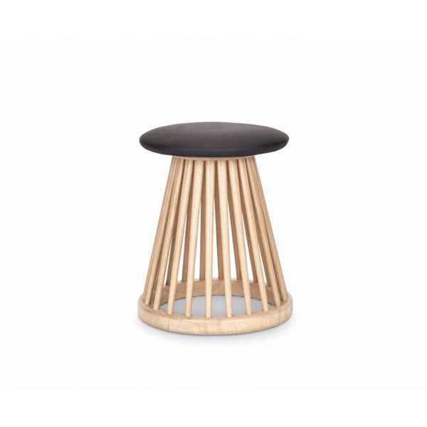 Originally a dramatic and sculptural take on a British design classic, Fan is available as a high back chair, dining chair, stool and table. The stools and chairs have a black leather seat pad, while the chairs feature a curved back, offering support and comfort. Available in Black Birch or Natural Oak.