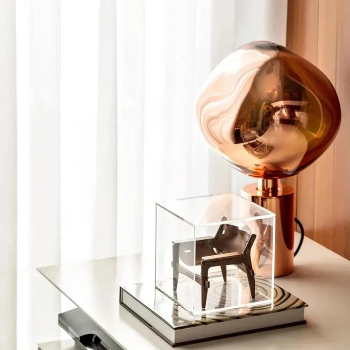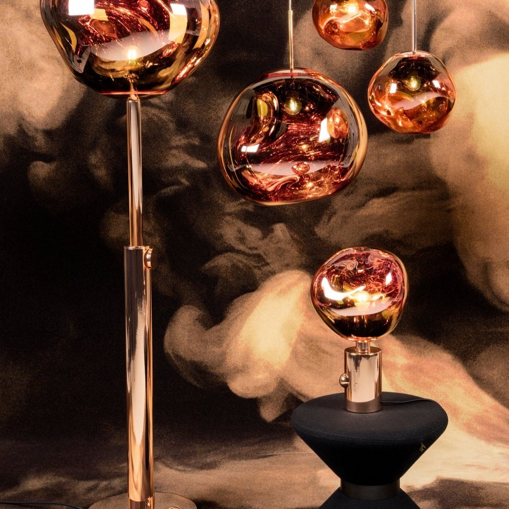 The Melt table light is a beautifully distorted lighting globe that creates a mesmerizing melting hot-blown glass effect. Translucent when on and mirror-finish when off, it emits an attractive, mildly hallucinogenic light this table light creates a mesmerizing melting hot-blown glass effect when on and a mirror-finish effect when off.