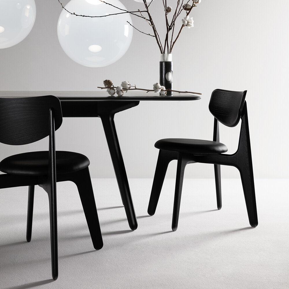 When we decided to design a dining chair that sat comfortably with the Slab range, we wanted something humble but with personality, modern yet looking like it had always existed, familiar yet unique - and on top of that stacking and comfortable! So, it took us a long time, as that turned out to be a particularly challenging brief. But we think we have cracked it with this chair that can sit proudly in many environments - an honest piece of skilled woodwork.