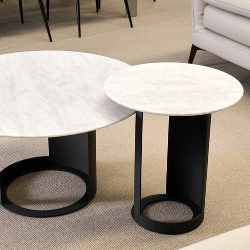 Add a touch of luxury to your living space with the Tommy Franks Alban Side Table in Carrara White. The Carrara white marble top, paired with a matte black base, creates a timeless and sophisticated accent piece, adding elegance to any room.