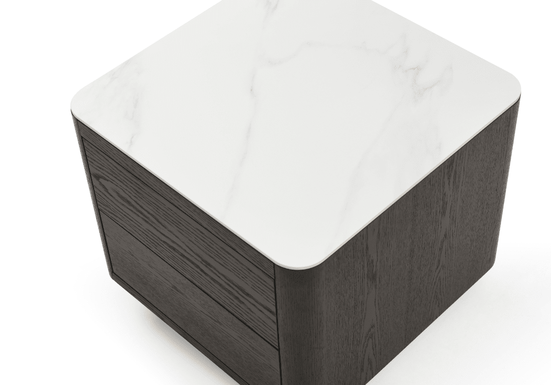 Elevate your bedroom to new heights of sophistication with the exquisite Coin Bedside Table. Complementing the majestic marble top is the smoke oak body of the bedside table. The rich and deep hues of the smoked oak lend a sense of warmth and sophistication to your bedroom decor. To further enhance its allure, the Coin Smoked Oak Bedside Table features a Molandi metal base. The sleek and slender metal legs provide a striking contrast to the robustness of the marble and oak, adding a touch of modernity and creating a sense of visual lightness. Meticulously crafted to combine the beauty of natural marble and the allure of smoked oak, this bedside table is a true statement of refined luxury.