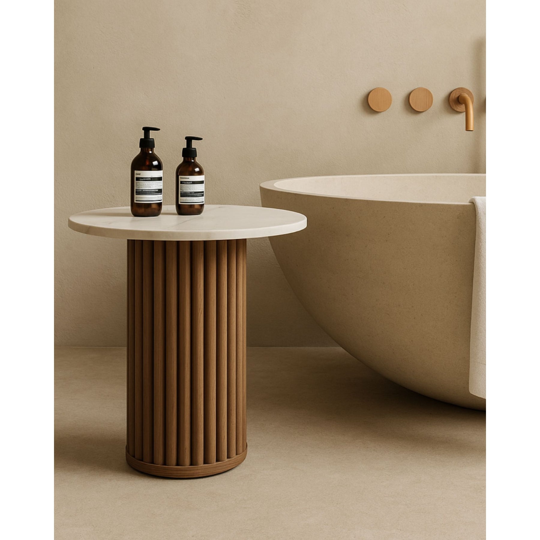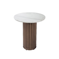The Odessa Side Table is a stunning blend of elegance and contemporary design. Its circular silhouette exudes a sense of modern sophistication, making it a perfect addition to any stylish living space. Topped with a luxurious Jazz white marble surface, the table boasts an exquisite natural pattern that adds a touch of opulence. The base, crafted from brass-coated metal, not only provides sturdy support but also infuses a hint of glamorous warmth to the overall aesthetic. With its harmonious fusion of materials and sleek lines, the Odessa Side Table effortlessly elevates the ambiance of any room while offering a functional surface for your essentials.