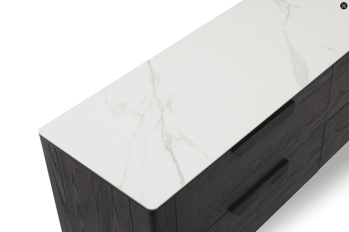 Meet the Palmetto Dresser, a stunning addition to your home that effortlessly combines functionality with timeless elegance. Crafted with meticulous attention to detail, this exquisite dresser is designed to elevate your space and enhance your interior decor. The Palmetto Dresser features a ceramic top that adds a touch of sophistication and durability to its design. The sleek, dark grey oak veneer finish exudes a sense of modernity, making it a perfect fit for contemporary and traditional settings alike. With its four spacious drawers, the Palmetto Dresser provides ample storage for your clothing, accessories, or any other personal items. Embodying a classic design, the Palmetto Dresser boasts clean lines and a refined silhouette. Its simplicity exudes a sense of sophistication and understated beauty, making it a versatile piece that seamlessly blends with various decor styles.