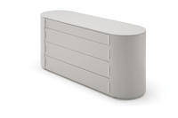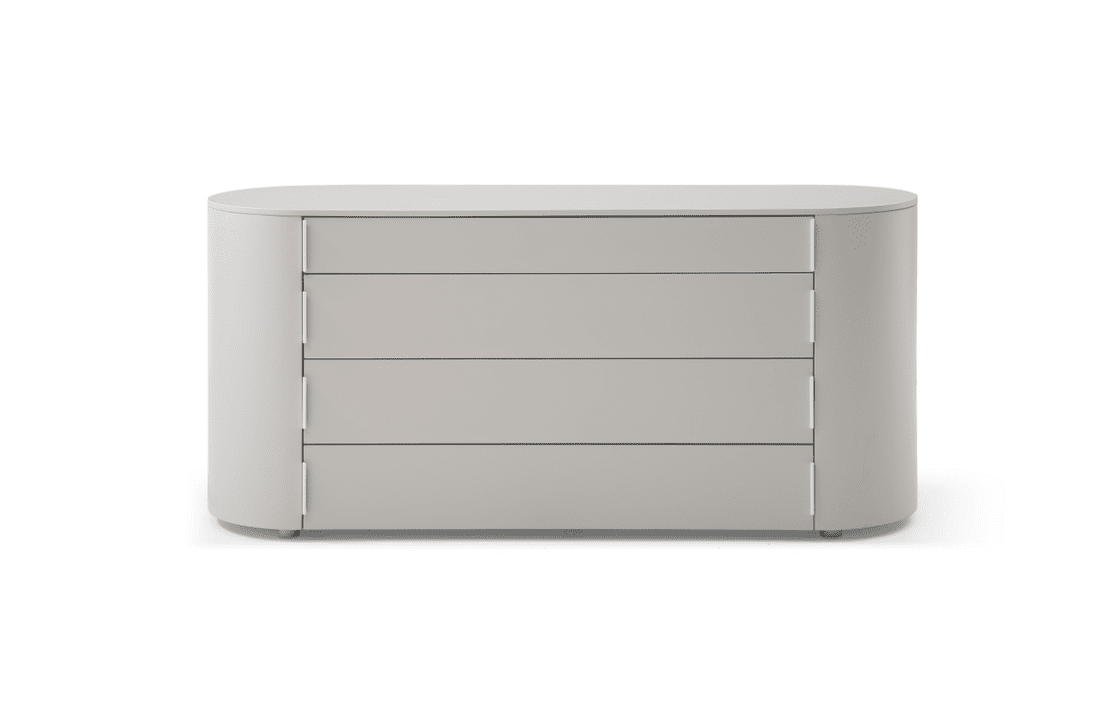 The Sims Dresser embodies contemporary elegance with its chic design and fresh appeal. Its soft curves and long oval shape exude sophistication, while the matte beige finish adds a touch of modernity to any bedroom decor. Crafted for both style and functionality, it features top drawer compartments for convenient organisation and four spacious drawers for ample storage, seamlessly blending practicality with sleek aesthetics.